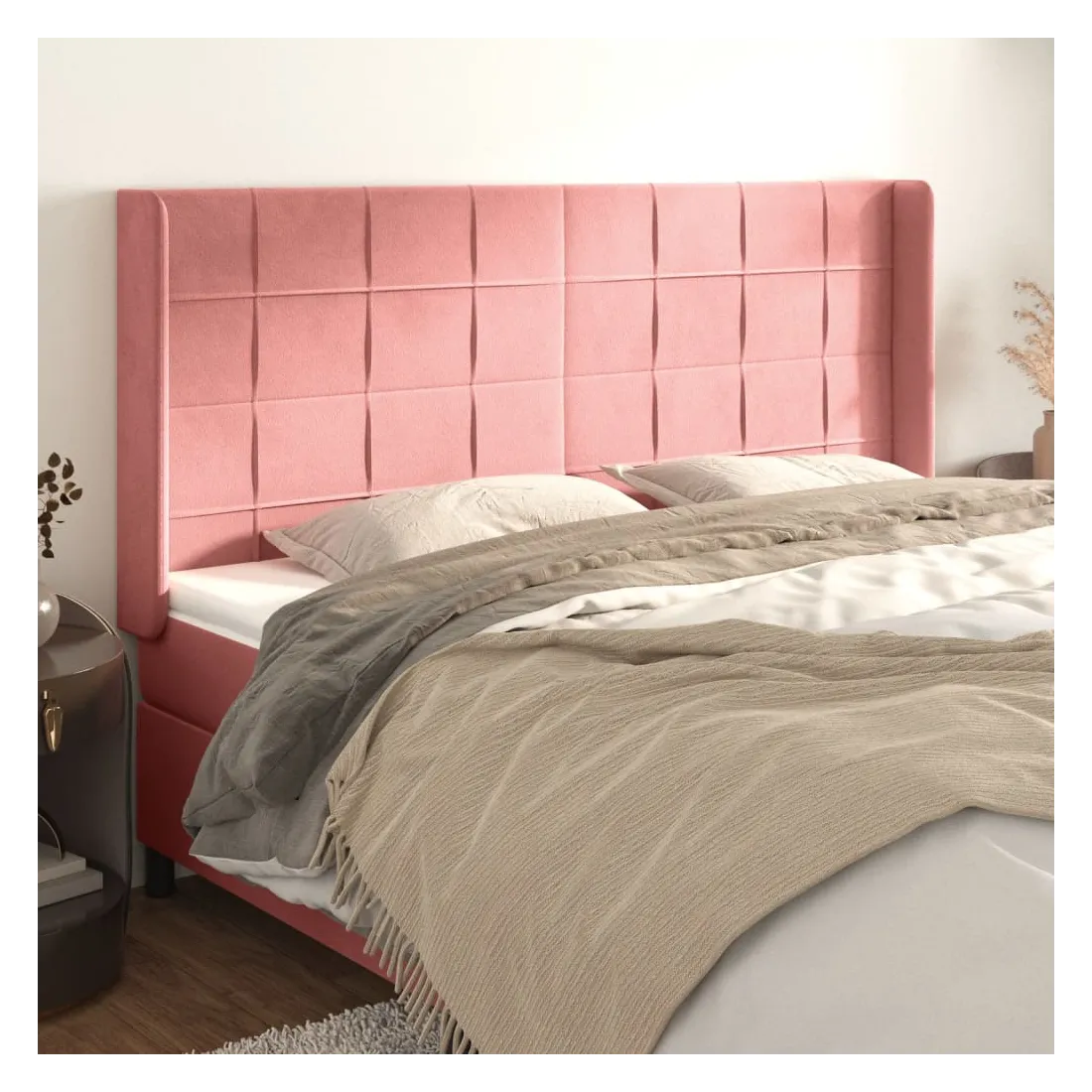 Tête de lit avec oreilles Rose 163x16x118/128 cm Velours