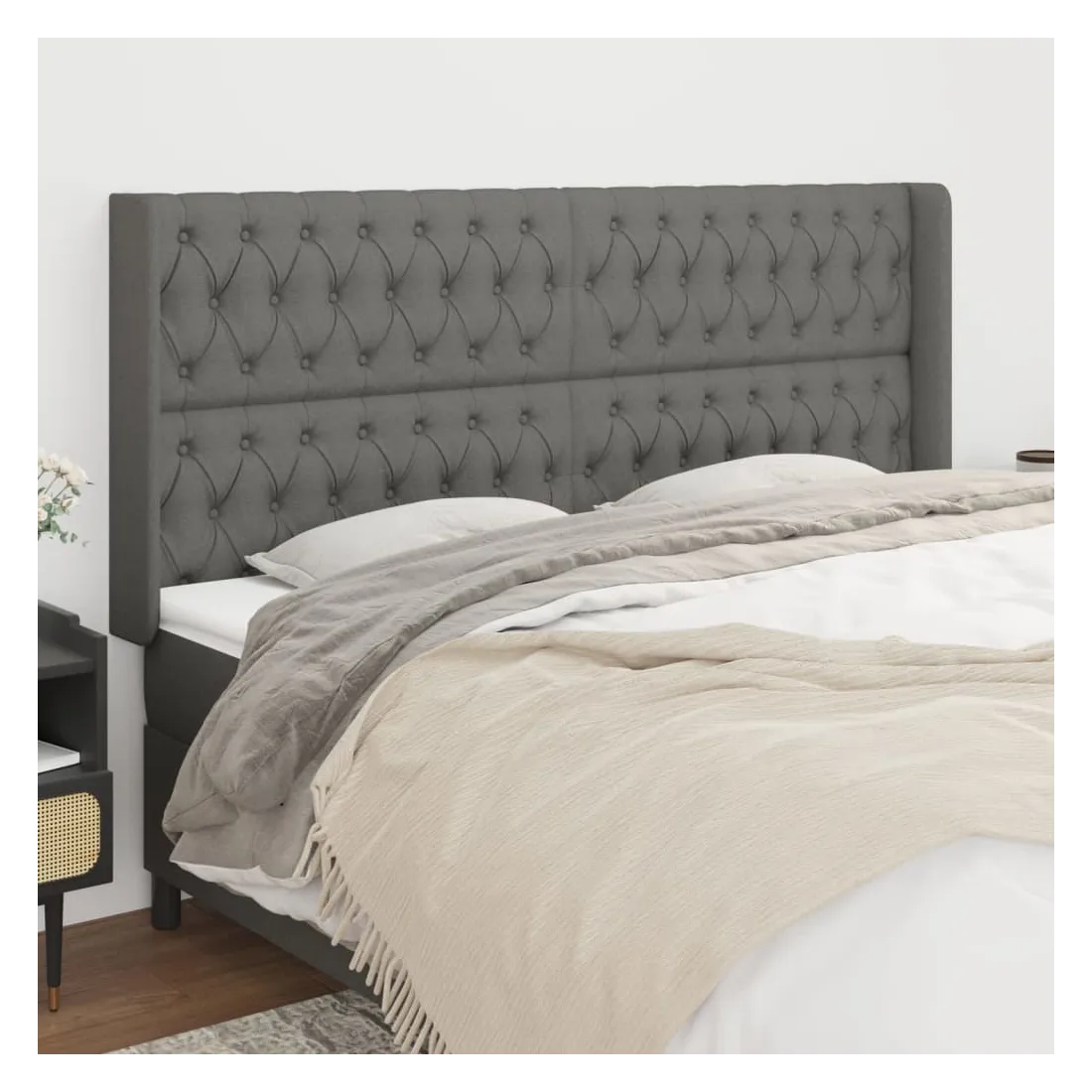 Cette tête de lit avec oreilles classique au design élégant donne à votre cadre de lit un aspect complet et convient à toute chambre à coucher. Tissu durable : le tissu présente un aspect simple et épuré, et il est respirant et durable.Pieds robustes et stables : les pieds en bois assurent la robustesse et la stabilité.Hauteur réglable : la tête de lit est réglable en hauteur selon vos préférences.Excellent soutien : la tête de lit vous offre un excellent soutien du dos lorsque vous êtes assis dans votre lit pour lire ou regarder la télévision. Remarque :La livraison comprend uniquement la tête de lit. Le cadre de lit et le matelas ne sont pas inclus. Vous pouvez consulter notre boutique pour les cadres et matelas assortis.Chaque produit est livré avec un manuel de montage dans la boîte pour un montage facile.