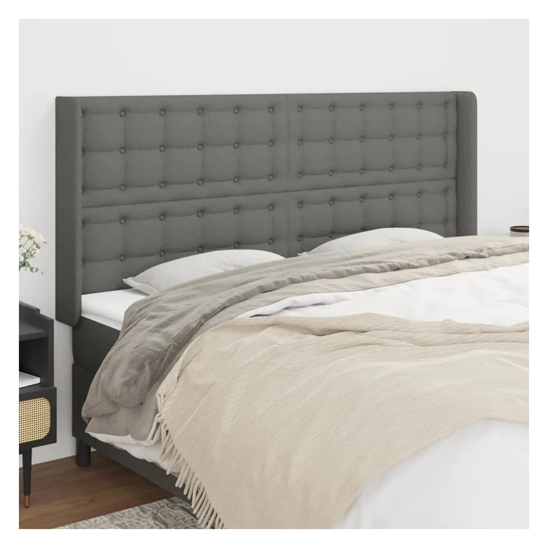 Cette tête de lit avec oreilles classique au design élégant donne à votre cadre de lit un aspect complet et convient à toute chambre à coucher. Tissu durable : le tissu présente un aspect simple et épuré, et il est respirant et durable.Pieds robustes et stables : les pieds en bois assurent la robustesse et la stabilité.Hauteur réglable : la tête de lit est réglable en hauteur selon vos préférences.Excellent soutien : la tête de lit vous offre un excellent soutien du dos lorsque vous êtes assis dans votre lit pour lire ou regarder la télévision. Remarque :La livraison comprend uniquement la tête de lit. Le cadre de lit et le matelas ne sont pas inclus. Vous pouvez consulter notre boutique pour les cadres et matelas assortis.Chaque produit est livré avec un manuel de montage dans la boîte pour un montage facile.