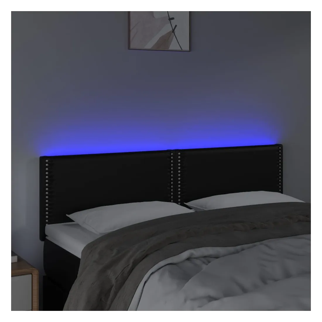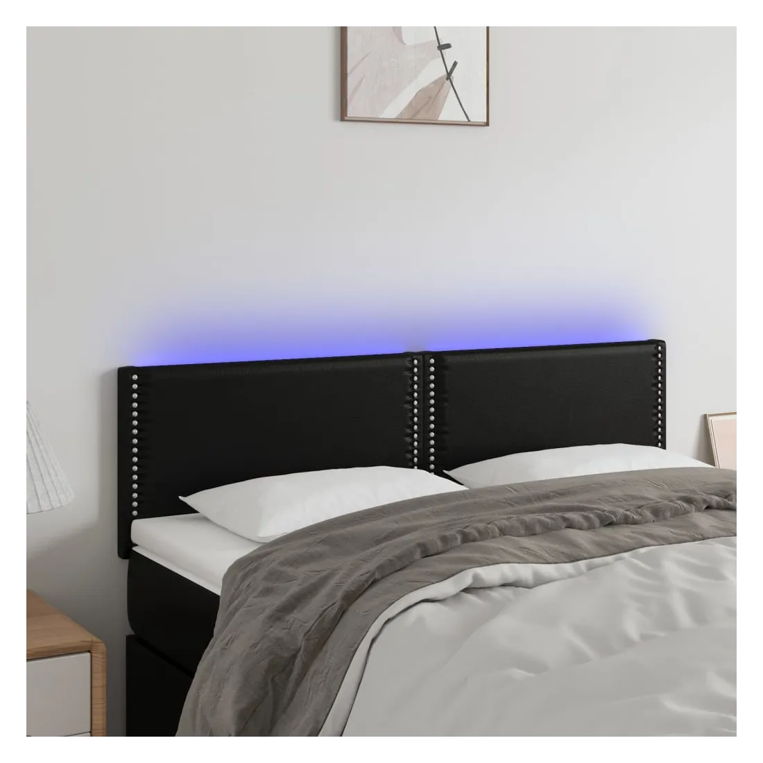 Cette tête de lit à LED classique, au design élégant, donne à votre cadre de lit une touche de modernité étonnante et convient parfaitement à toute chambre à coucher. Similicuir durable : le similicuir de qualité supérieure est un matériau très durable. Il est résistant aux taches, ce qui le rend facile à nettoyer avec un chiffon humide. La surface lisse donne également un aspect luxueux et la beauté du cuir véritable.LED colorée : apportez de l'éclairage dans l'obscurité avec des lumières LED colorées !Hauteur réglable : la tête de lit est réglable en hauteur selon vos préférences.Excellent soutien : la tête de lit vous offre un excellent soutien du dos lorsque vous êtes assis dans votre lit pour lire ou regarder la télévision.Bande à LED découpable : cette bande à LED flexible peut être ajustée en longueur. Le symbole des ciseaux indique où la bande peut être coupée en toute sécurité sans l'endommager. Remarque :Seule la partie avec un symbole de ciseaux peut être coupée et seule la partie avec l'USB continuera à fonctionner comme avant.Chaque produit est livré avec un manuel de montage dans la boîte pour un montage facile.Ce produit est doté d'un connecteur USB, mais la source d'alimentation certifiée de USB 5V n'est pas incluse.