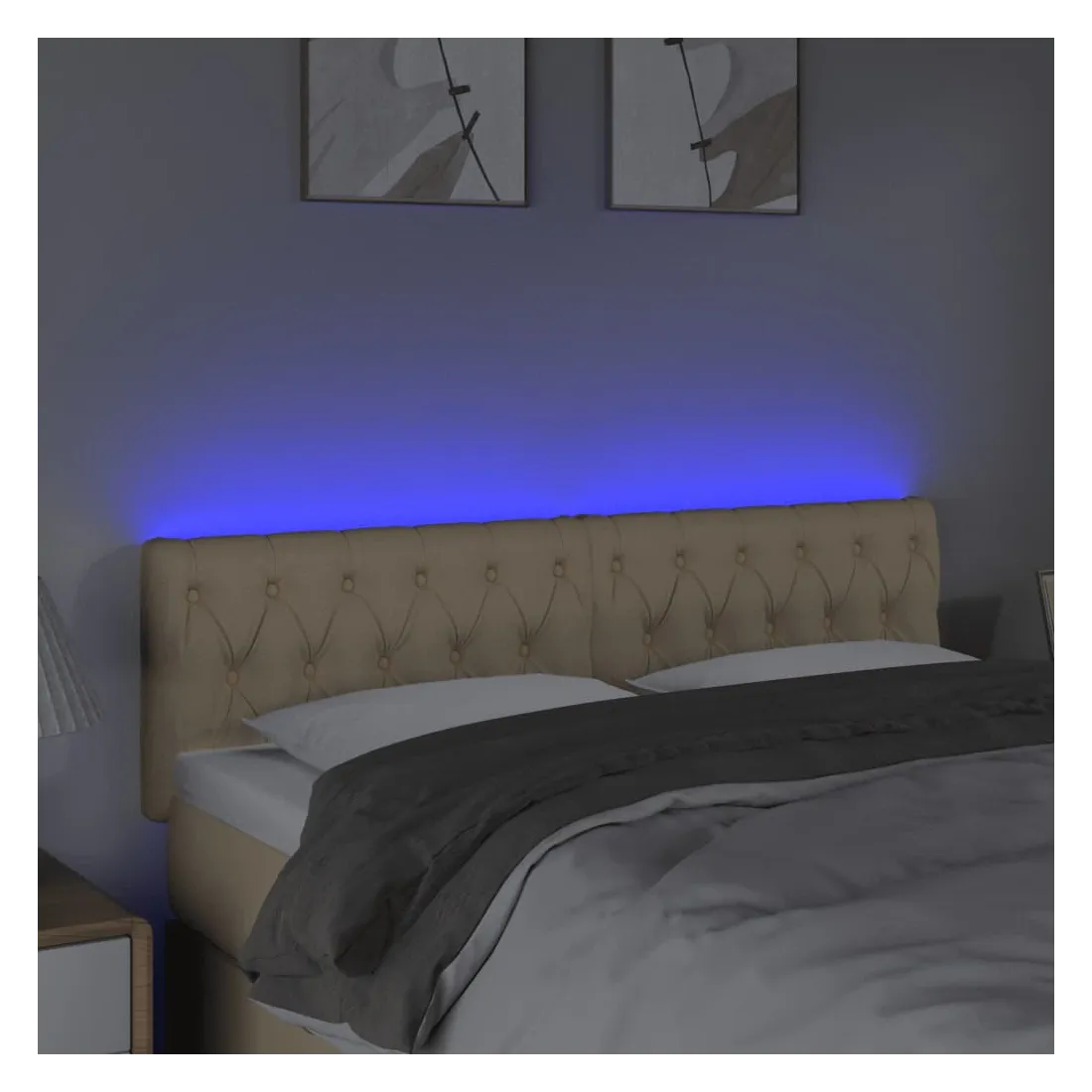 Cette tête de lit à LED classique, au design élégant, donne à votre cadre de lit une touche de modernité étonnante et convient parfaitement à toute chambre à coucher. Tissu durable : le tissu présente un aspect simple et épuré, et il est respirant et durable.LED colorée : apportez de l'éclairage dans l'obscurité avec des lumières LED colorées !Hauteur réglable : la tête de lit est réglable en hauteur selon vos préférences.Excellent soutien : la tête de lit vous offre un excellent soutien du dos lorsque vous êtes assis dans votre lit pour lire ou regarder la télévision.Bande à LED découpable : cette bande à LED flexible peut être ajustée en longueur. Le symbole des ciseaux indique où la bande peut être coupée en toute sécurité sans l'endommager. Remarque :Seule la partie avec un symbole de ciseaux peut être coupée et seule la partie avec l'USB continuera à fonctionner comme avant.Chaque produit est livré avec un manuel de montage dans la boîte pour un montage facile.Ce produit est doté d'un connecteur USB, mais la source d'alimentation certifiée de USB 5V n'est pas incluse.