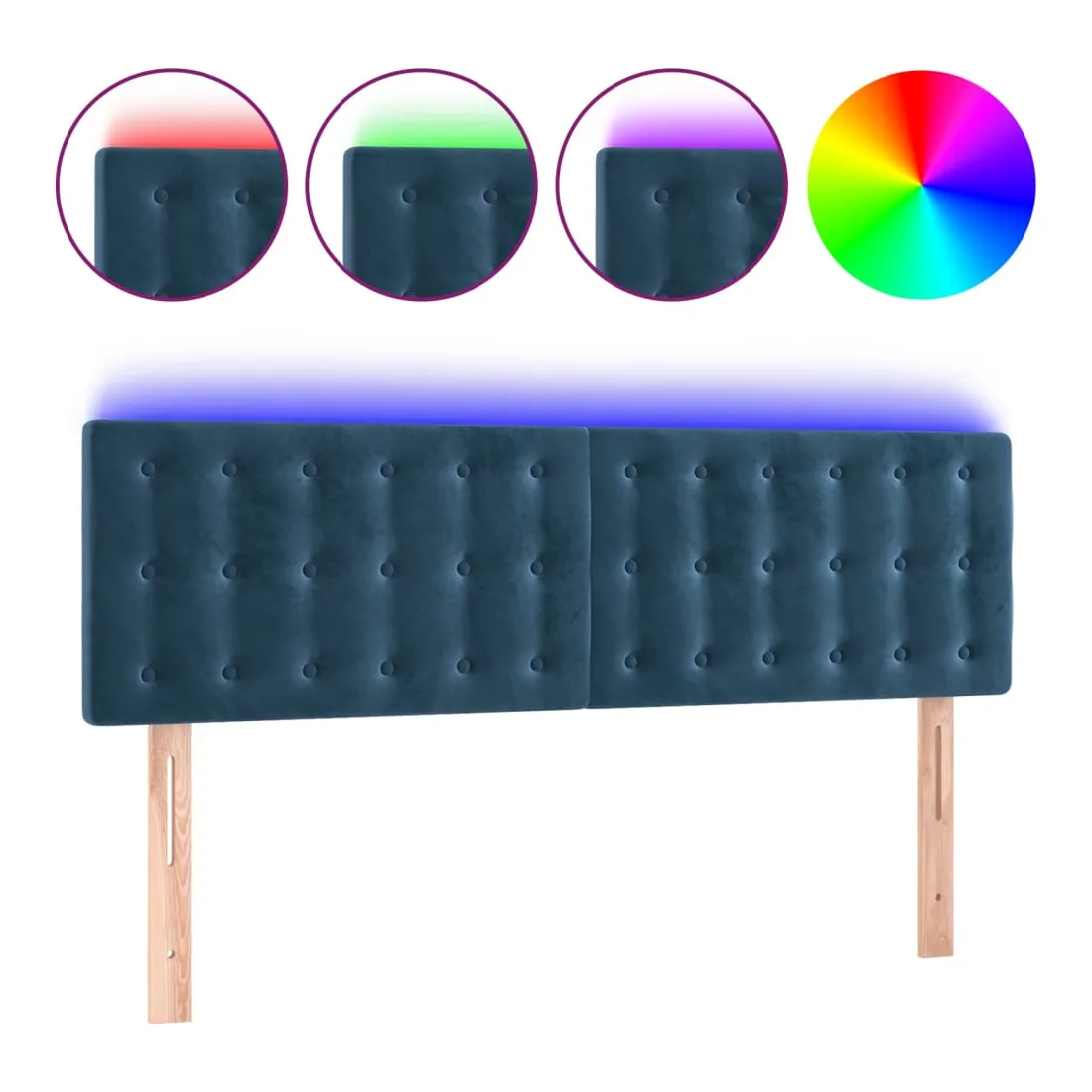 Tête de lit à LED Bleu foncé 144x5x78/88 cm Velours