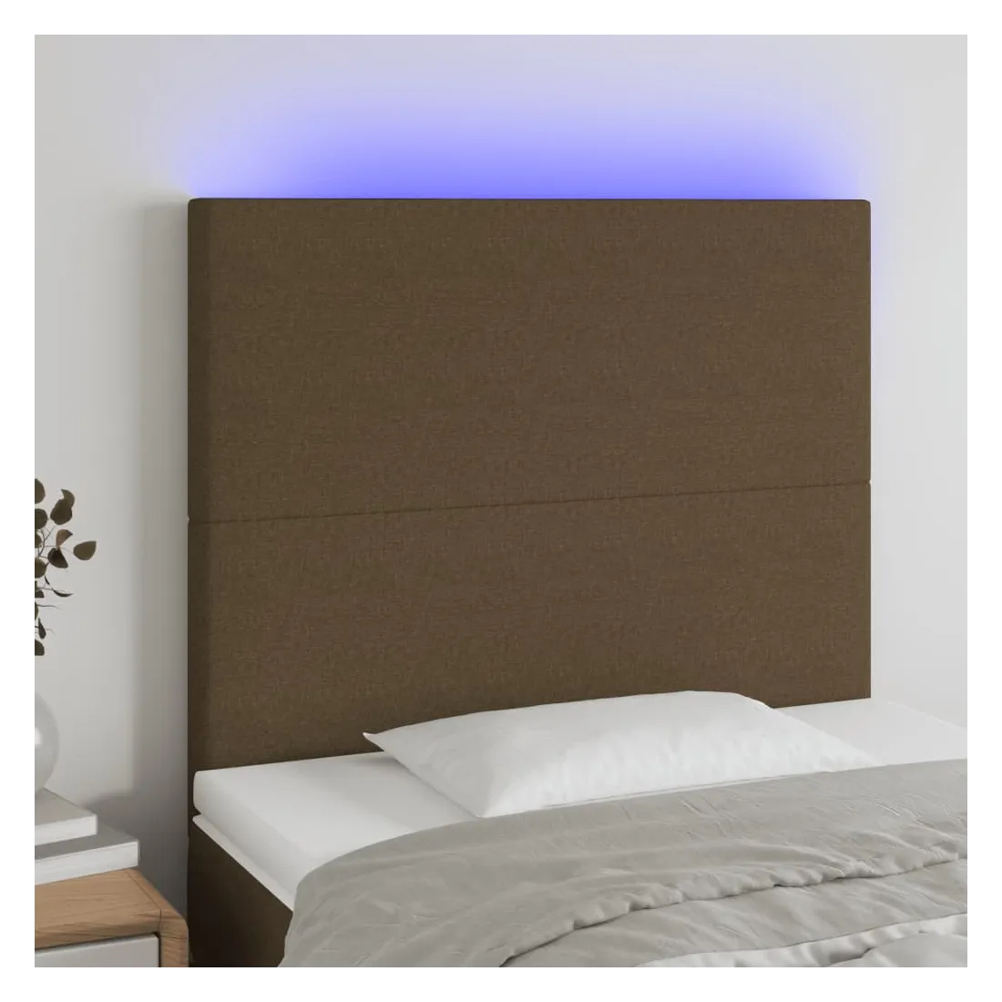 Tête de lit à LED Marron foncé 100x5x118/128 cm Tissu