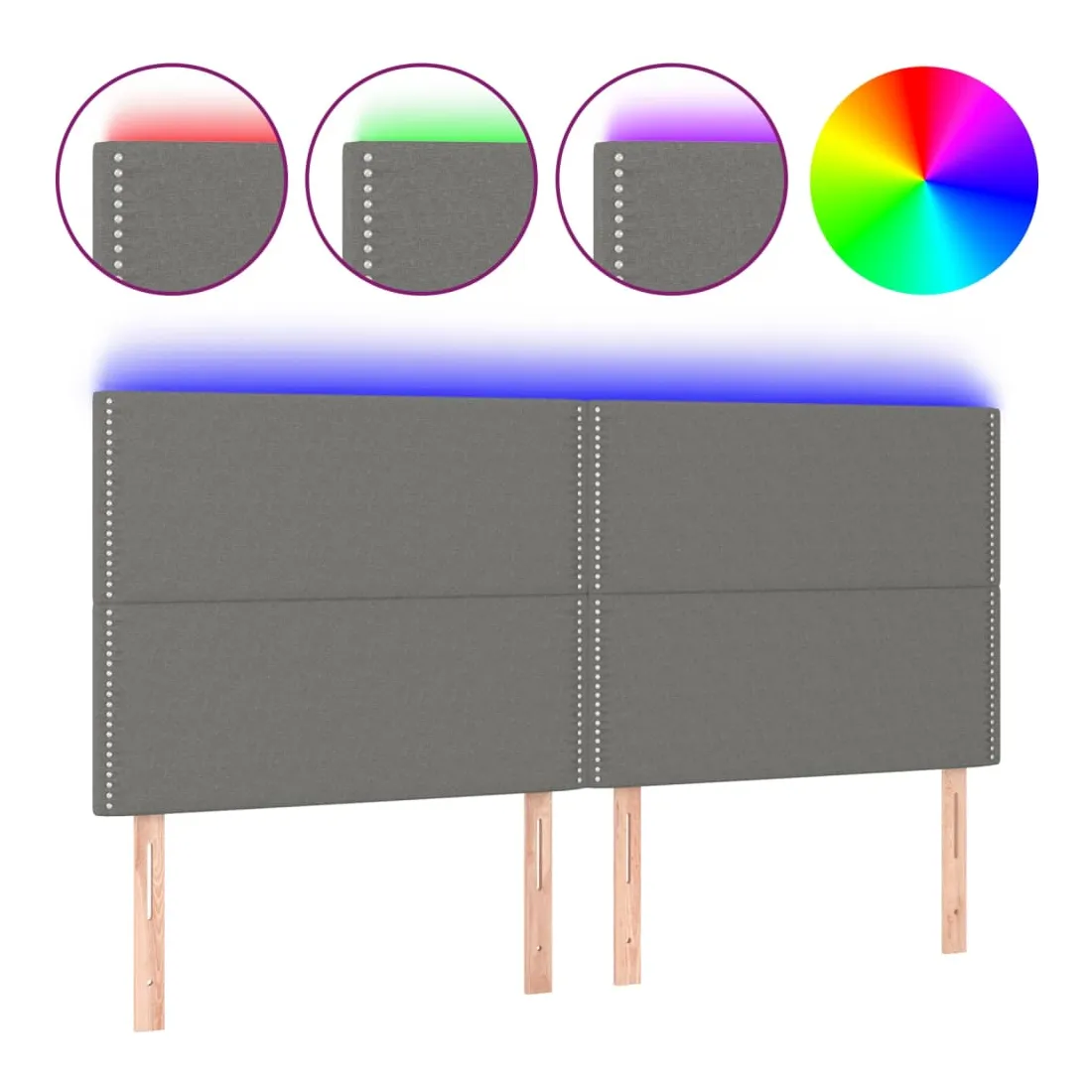 Cette tête de lit à LED classique, au design élégant, donne à votre cadre de lit une touche de modernité étonnante et convient parfaitement à toute chambre à coucher. Tissu durable : le tissu présente un aspect simple et épuré, et il est respirant et durable. LED colorée : apportez de l'éclairage dans l'obscurité avec des lumières LED colorées ! Hauteur réglable : la tête de lit est réglable en hauteur selon vos préférences. Excellent soutien : la tête de lit vous offre un excellent soutien du dos lorsque vous êtes assis dans votre lit pour lire ou regarder la télévision. Bande à LED découpable : cette bande à LED flexible peut être ajustée en longueur. Le symbole des ciseaux indique où la bande peut être coupée en toute sécurité sans l'endommager. Remarque : Seule la partie avec un sy