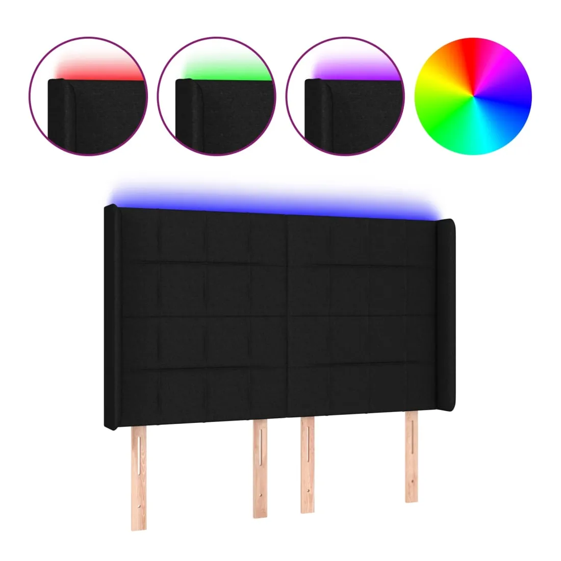 Tête de lit à LED Noir 144x5x118/128 cm Tissu