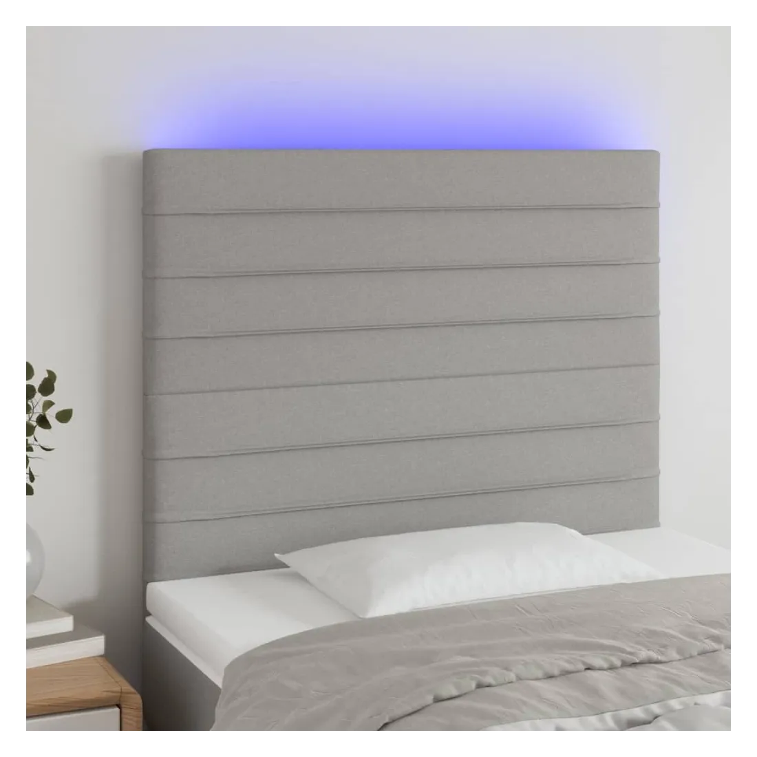 Cette tête de lit à LED classique, au design élégant, donne à votre cadre de lit une touche de modernité étonnante et convient parfaitement à toute chambre à coucher. Tissu durable : le tissu présente un aspect simple et épuré, et il est respirant et durable. LED colorée : apportez de l'éclairage dans l'obscurité avec des lumières LED colorées ! Hauteur réglable : la tête de lit est réglable en hauteur selon vos préférences. Excellent soutien : la tête de lit vous offre un excellent soutien du dos lorsque vous êtes assis dans votre lit pour lire ou regarder la télévision. Bande à LED découpable : cette bande à LED flexible peut être ajustée en longueur. Le symbole des ciseaux indique où la bande peut être coupée en toute sécurité sans l'endommager. Remarque : Seule la partie avec un sy