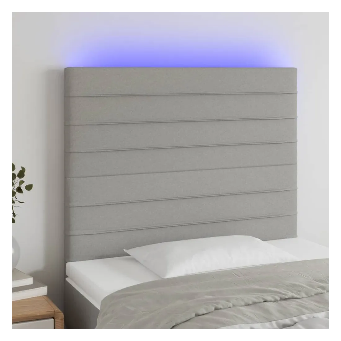 Tête de lit à LED Gris clair 100x5x118/128 cm Tissu