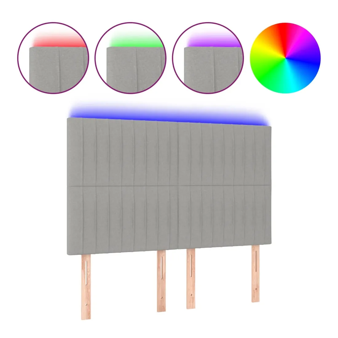 Cette tête de lit à LED classique, au design élégant, donne à votre cadre de lit une touche de modernité étonnante et convient parfaitement à toute chambre à coucher. Tissu durable : le tissu présente un aspect simple et épuré, et il est respirant et durable.LED colorée : apportez de l'éclairage dans l'obscurité avec des lumières LED colorées !Hauteur réglable : la tête de lit est réglable en hauteur selon vos préférences.Excellent soutien : la tête de lit vous offre un excellent soutien du dos lorsque vous êtes assis dans votre lit pour lire ou regarder la télévision.Bande à LED découpable : cette bande à LED flexible peut être ajustée en longueur. Le symbole des ciseaux indique où la bande peut être coupée en toute sécurité sans l'endommager. Remarque :Seule la partie avec un symbole de ciseaux peut être coupée et seule la partie avec l'USB continuera à fonctionner comme avant.Chaque produit est livré avec un manuel de montage dans la boîte pour un montage facile.Ce produit est doté d'un connecteur USB, mais la source d'alimentation certifiée de USB 5V n'est pas incluse.