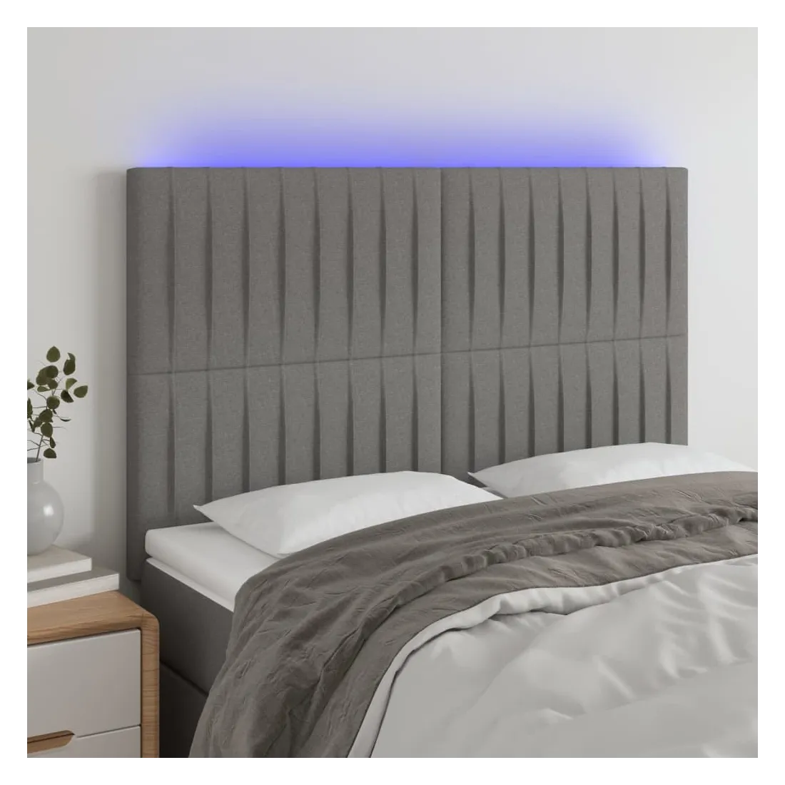 Tête de lit à LED Gris foncé 144x5x118/128 cm Tissu