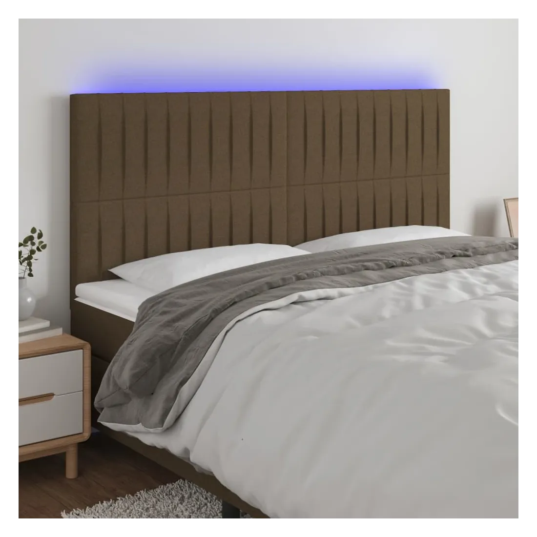 Tête de lit à LED Marron foncé 200x5x118/128 cm Tissu