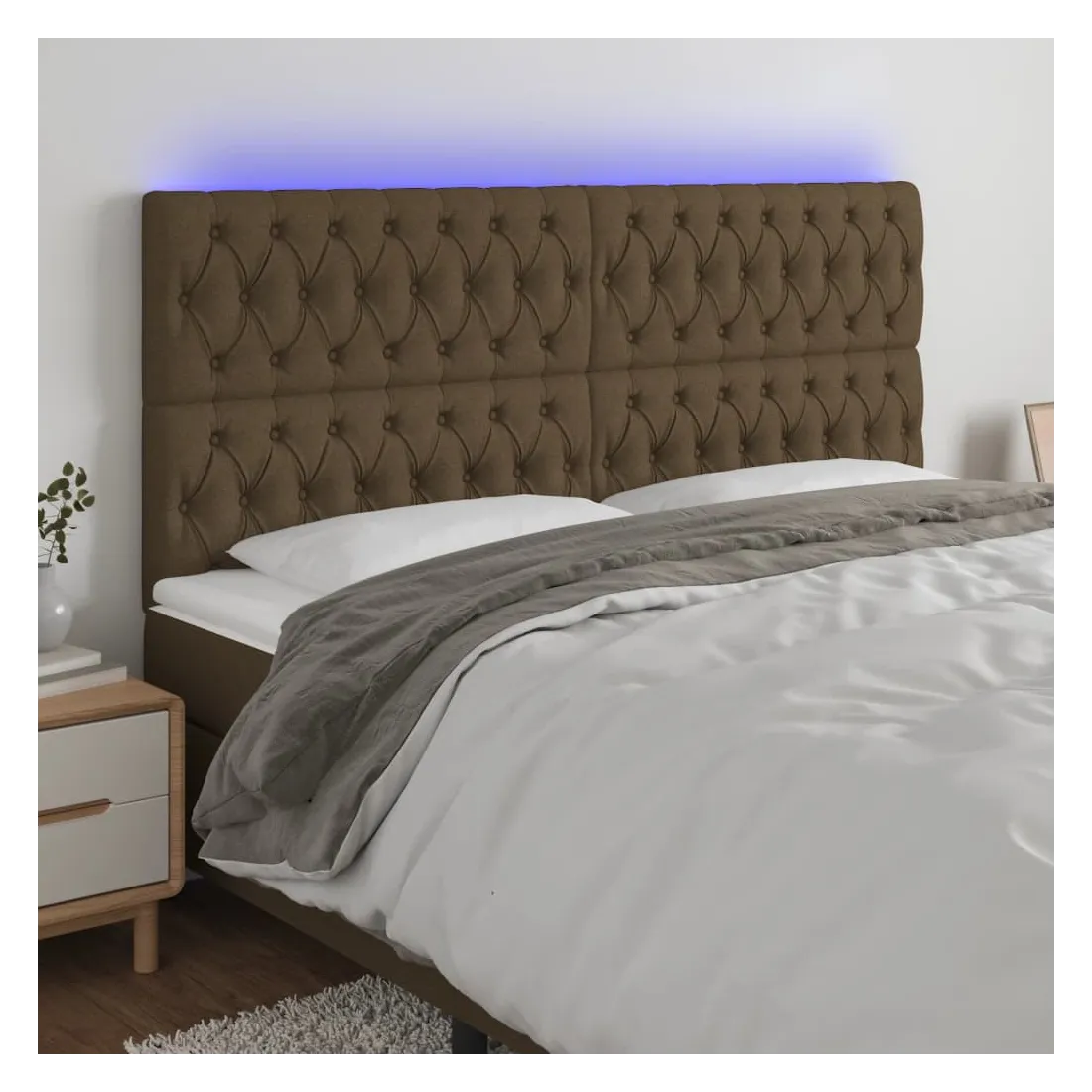 Tête de lit à LED Marron foncé 200x7x118/128 cm Tissu
