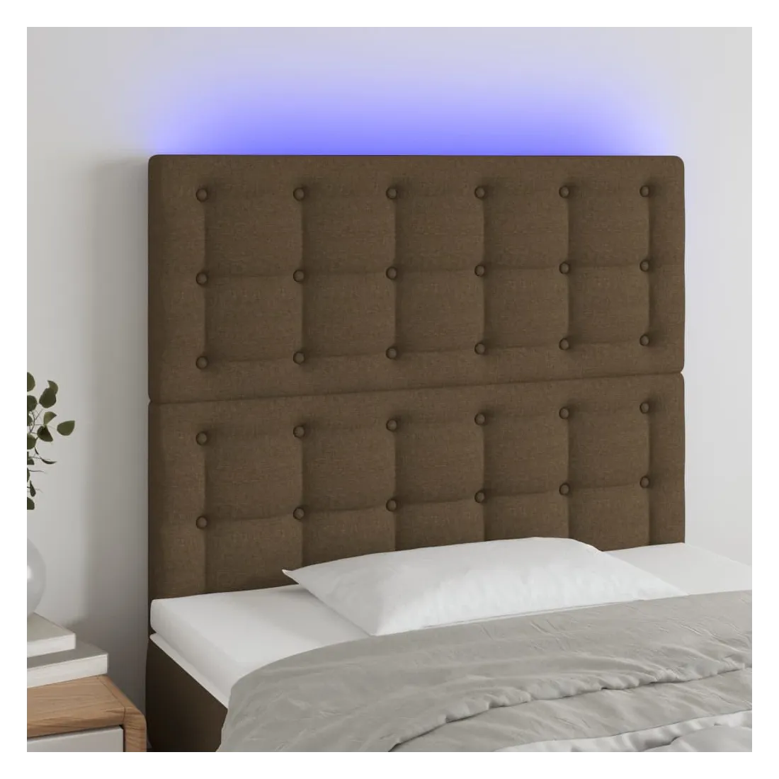 Cette tête de lit à LED classique, au design élégant, donne à votre cadre de lit une touche de modernité étonnante et convient parfaitement à toute chambre à coucher. Tissu durable : le tissu présente un aspect simple et épuré, et il est respirant et durable.LED colorée : apportez de l'éclairage dans l'obscurité avec des lumières LED colorées !Hauteur réglable : la tête de lit est réglable en hauteur selon vos préférences.Excellent soutien : la tête de lit vous offre un excellent soutien du dos lorsque vous êtes assis dans votre lit pour lire ou regarder la télévision.Bande à LED découpable : cette bande à LED flexible peut être ajustée en longueur. Le symbole des ciseaux indique où la bande peut être coupée en toute sécurité sans l'endommager. Remarque :Seule la partie avec un symbole de ciseaux peut être coupée et seule la partie avec l'USB continuera à fonctionner comme avant.Chaque produit est livré avec un manuel de montage dans la boîte pour un montage facile.Ce produit est doté d'un connecteur USB, mais la source d'alimentation certifiée de USB 5V n'est pas incluse.