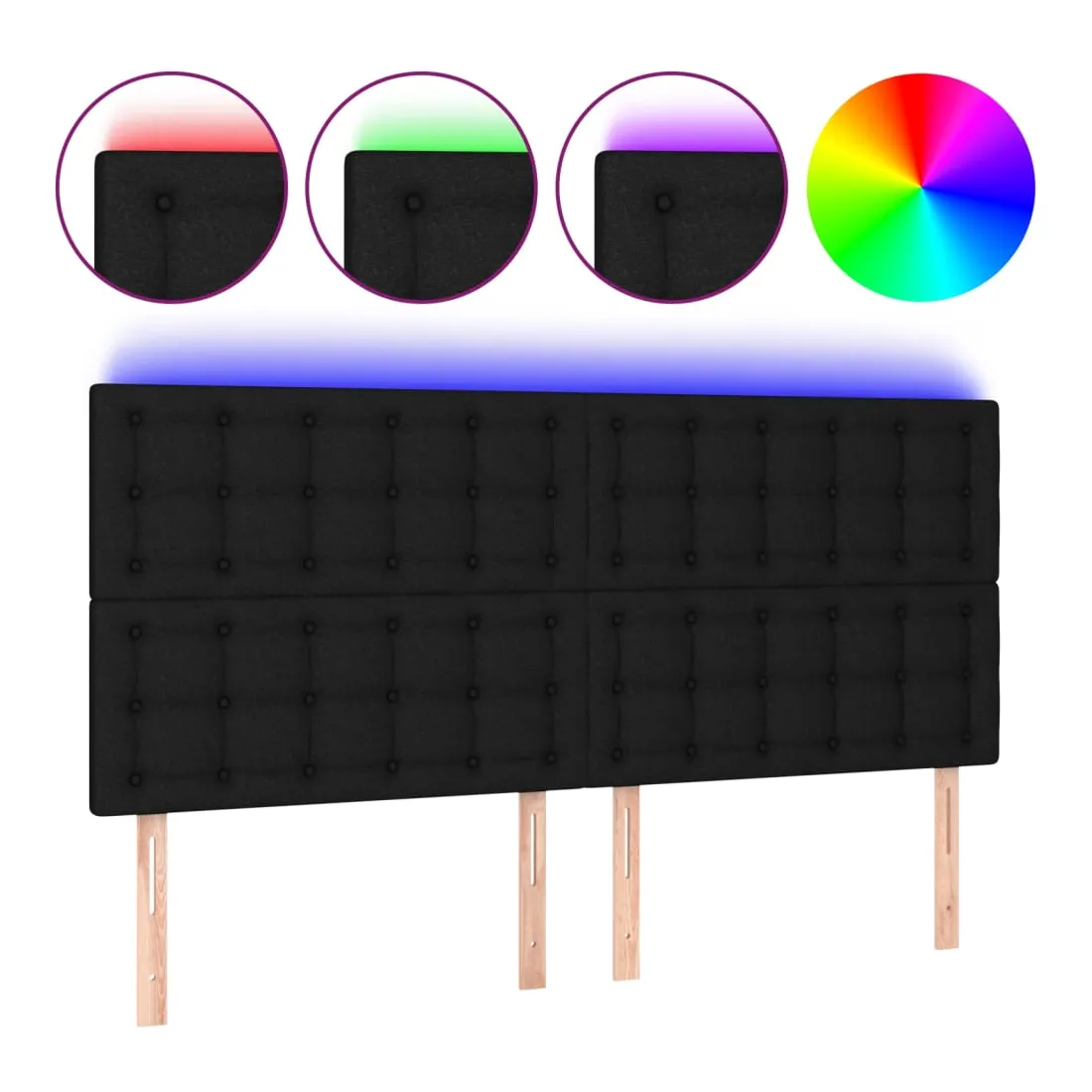 Cette tête de lit à LED classique, au design élégant, donne à votre cadre de lit une touche de modernité étonnante et convient parfaitement à toute chambre à coucher. Tissu durable : le tissu présente un aspect simple et épuré, et il est respirant et durable. LED colorée : apportez de l'éclairage dans l'obscurité avec des lumières LED colorées ! Hauteur réglable : la tête de lit est réglable en hauteur selon vos préférences. Excellent soutien : la tête de lit vous offre un excellent soutien du dos lorsque vous êtes assis dans votre lit pour lire ou regarder la télévision. Bande à LED découpable : cette bande à LED flexible peut être ajustée en longueur. Le symbole des ciseaux indique où la bande peut être coupée en toute sécurité sans l'endommager. Remarque : Seule la partie avec un sy