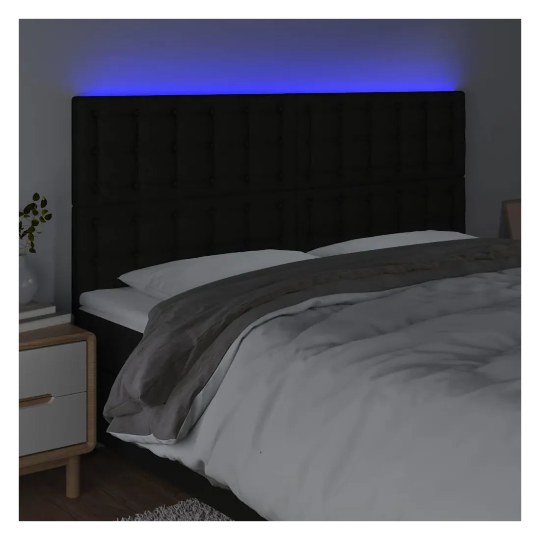 Cette tête de lit à LED classique, au design élégant, donne à votre cadre de lit une touche de modernité étonnante et convient parfaitement à toute chambre à coucher. Tissu durable : le tissu présente un aspect simple et épuré, et il est respirant et durable.LED colorée : apportez de l'éclairage dans l'obscurité avec des lumières LED colorées !Hauteur réglable : la tête de lit est réglable en hauteur selon vos préférences.Excellent soutien : la tête de lit vous offre un excellent soutien du dos lorsque vous êtes assis dans votre lit pour lire ou regarder la télévision.Bande à LED découpable : cette bande à LED flexible peut être ajustée en longueur. Le symbole des ciseaux indique où la bande peut être coupée en toute sécurité sans l'endommager. Remarque :Seule la partie avec un symbole de ciseaux peut être coupée et seule la partie avec l'USB continuera à fonctionner comme avant.Chaque produit est livré avec un manuel de montage dans la boîte pour un montage facile.Ce produit est doté d'un connecteur USB, mais la source d'alimentation certifiée de USB 5V n'est pas incluse.