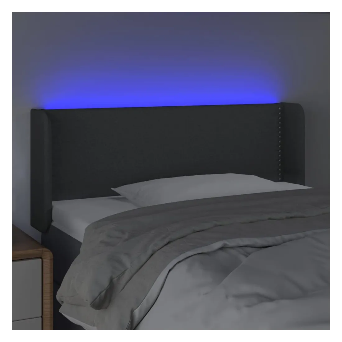 Cette tête de lit à LED classique, au design élégant, donne à votre cadre de lit une touche de modernité étonnante et convient parfaitement à toute chambre à coucher. Tissu durable : le tissu présente un aspect simple et épuré, et il est respirant et durable. LED colorée : apportez de l'éclairage dans l'obscurité avec des lumières LED colorées ! Hauteur réglable : la tête de lit est réglable en hauteur selon vos préférences. Excellent soutien : la tête de lit vous offre un excellent soutien du dos lorsque vous êtes assis dans votre lit pour lire ou regarder la télévision. Bande à LED découpable : cette bande à LED flexible peut être ajustée en longueur. Le symbole des ciseaux indique où la bande peut être coupée en toute sécurité sans l'endommager. Remarque : Seule la partie avec un sy