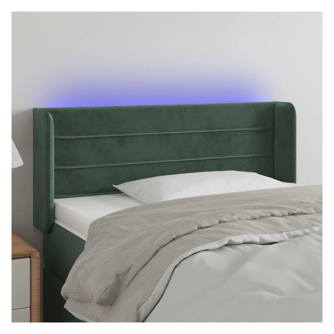 Cette tête de lit à LED classique, au design élégant, donne à votre cadre de lit une touche de modernité étonnante et convient parfaitement à toute chambre à coucher. Velours doux : le velours est un tissu doux et luxueux qui se reconnaît à son tas dense de fibres uniformément coupées qui ont une touche lisse. Le tissu en velours présente un toucher doux distinctif, ce qui le rend confortable au toucher.LED colorée : apportez de l'éclairage dans l'obscurité avec des lumières LED colorées !Hauteur réglable : la tête de lit est réglable en hauteur selon vos préférences.Excellent soutien : la tête de lit vous offre un excellent soutien du dos lorsque vous êtes assis dans votre lit pour lire ou regarder la télévision.Bande à LED découpable : cette bande à LED flexible peut être ajustée en longueur. Le symbole des ciseaux indique où la bande peut être coupée en toute sécurité sans l'endommager. Remarque :Seule la partie avec un symbole de ciseaux peut être coupée et seule la partie avec l'USB continuera à fonctionner comme avant.Chaque produit est livré avec un manuel de montage dans la boîte pour un montage facile.Ce produit est doté d'un connecteur USB, mais la source d'alimentation certifiée de USB 5V n'est pas incluse.
