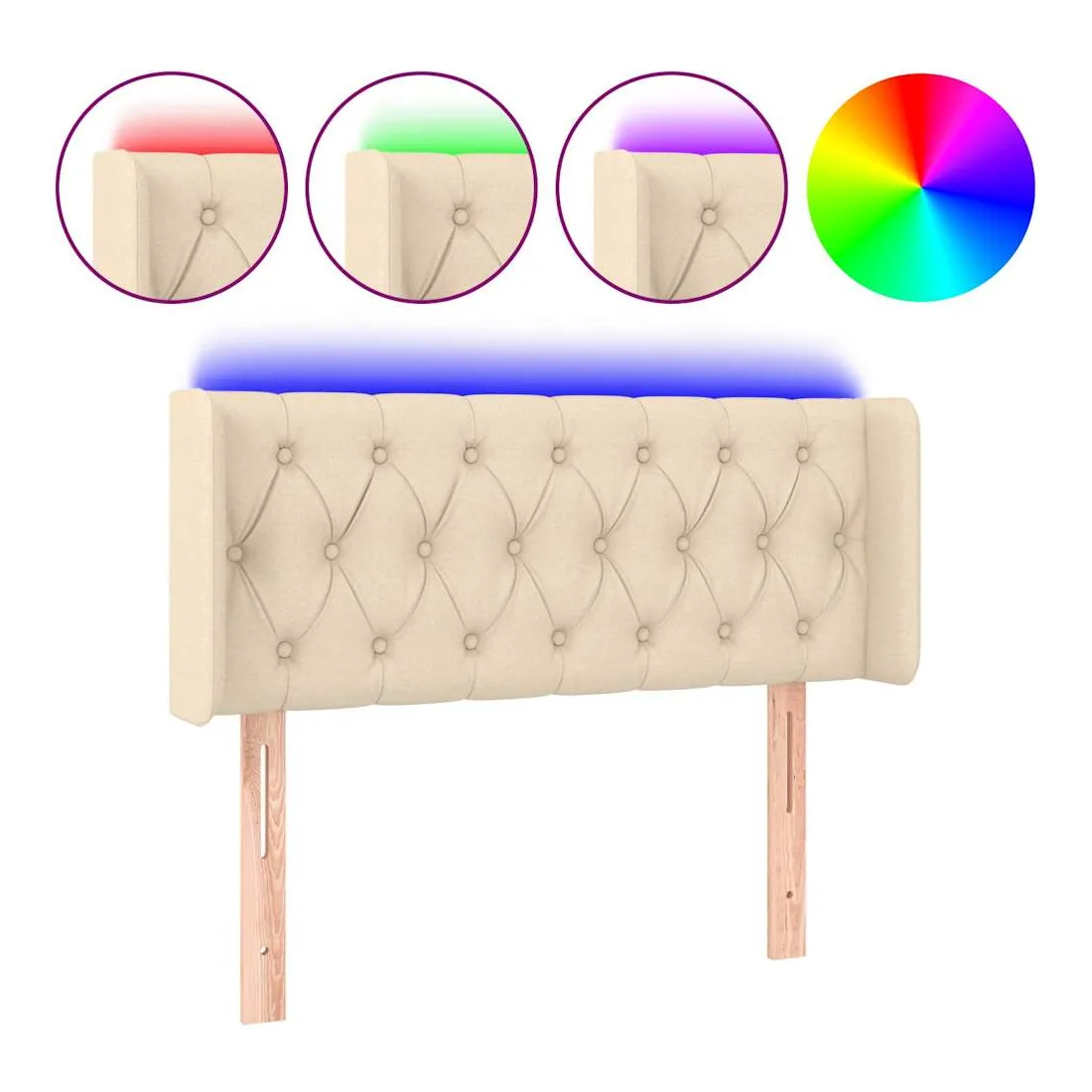 Cette tête de lit à LED classique, au design élégant, donne à votre cadre de lit une touche de modernité étonnante et convient parfaitement à toute chambre à coucher. Tissu durable : le tissu présente un aspect simple et épuré, et il est respirant et durable. LED colorée : apportez de l'éclairage dans l'obscurité avec des lumières LED colorées ! Hauteur réglable : la tête de lit est réglable en hauteur selon vos préférences. Excellent soutien : la tête de lit vous offre un excellent soutien du dos lorsque vous êtes assis dans votre lit pour lire ou regarder la télévision. Bande à LED découpable : cette bande à LED flexible peut être ajustée en longueur. Le symbole des ciseaux indique où la bande peut être coupée en toute sécurité sans l'endommager. Remarque : Seule la partie avec un sy