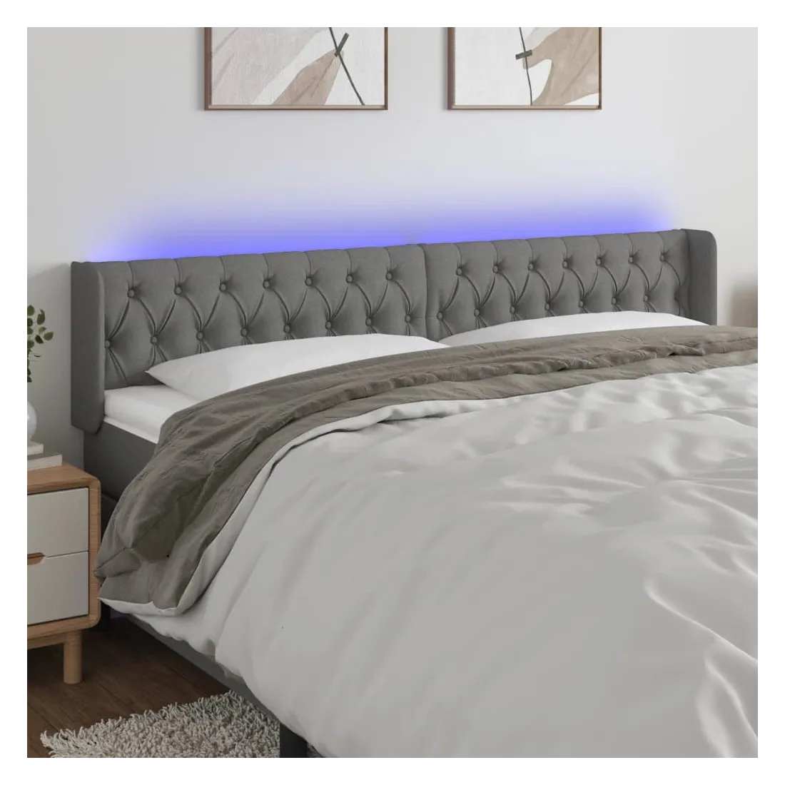 Tête de lit à LED Gris foncé 183x16x78/88 cm Tissu
