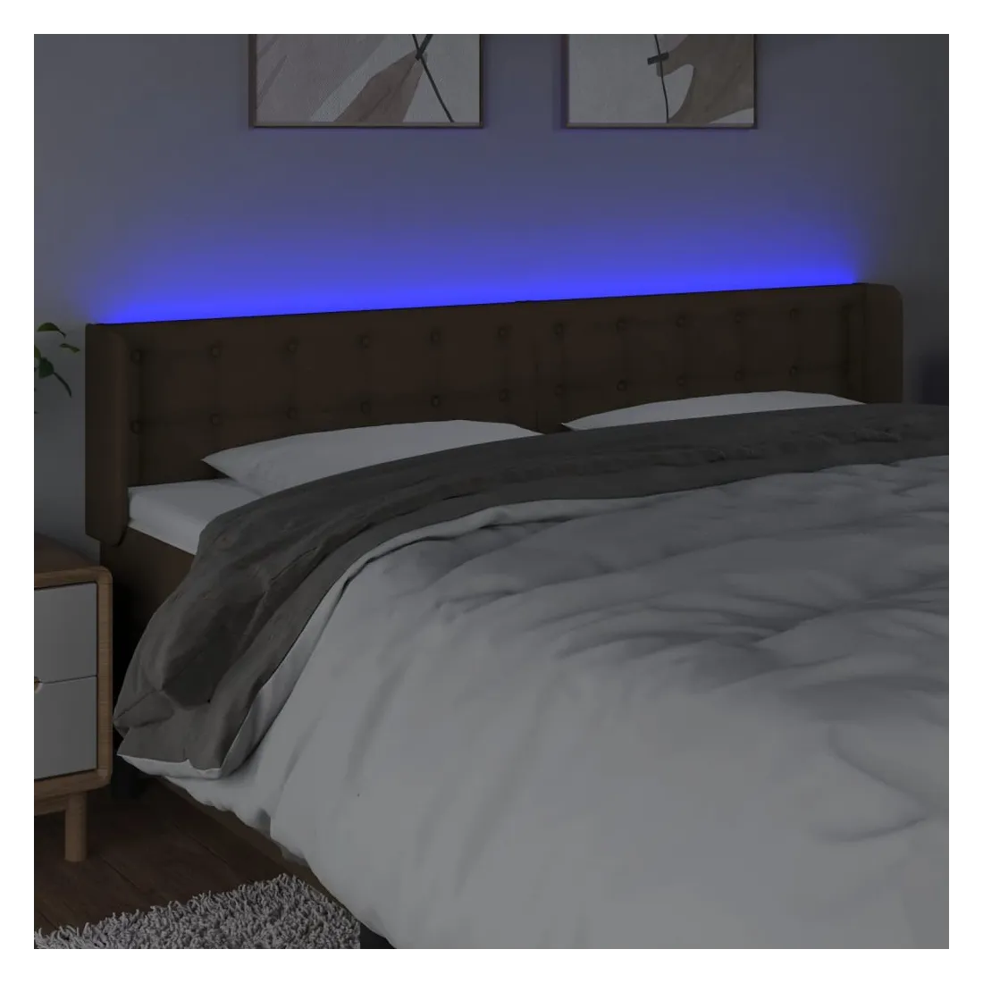 Cette tête de lit à LED classique, au design élégant, donne à votre cadre de lit une touche de modernité étonnante et convient parfaitement à toute chambre à coucher. Tissu durable : le tissu présente un aspect simple et épuré, et il est respirant et durable.LED colorée : apportez de l'éclairage dans l'obscurité avec des lumières LED colorées !Hauteur réglable : la tête de lit est réglable en hauteur selon vos préférences.Excellent soutien : la tête de lit vous offre un excellent soutien du dos lorsque vous êtes assis dans votre lit pour lire ou regarder la télévision.Bande à LED découpable : cette bande à LED flexible peut être ajustée en longueur. Le symbole des ciseaux indique où la bande peut être coupée en toute sécurité sans l'endommager. Remarque :Seule la partie avec un symbole de ciseaux peut être coupée et seule la partie avec l'USB continuera à fonctionner comme avant.Chaque produit est livré avec un manuel de montage dans la boîte pour un montage facile.Ce produit est doté d'un connecteur USB, mais la source d'alimentation certifiée de USB 5V n'est pas incluse.