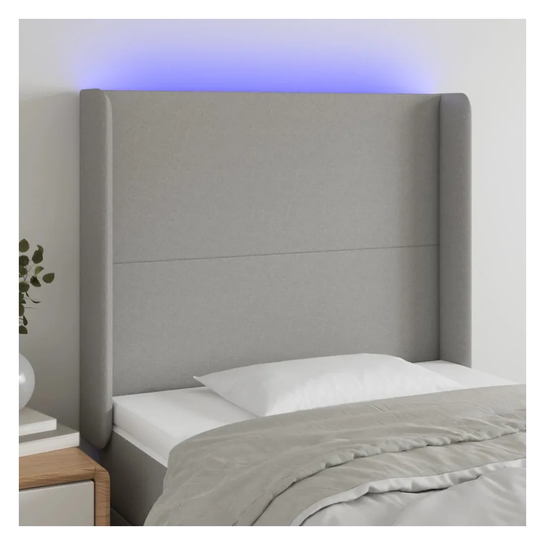 Cette tête de lit à LED classique, au design élégant, donne à votre cadre de lit une touche de modernité étonnante et convient parfaitement à toute chambre à coucher. Tissu durable : le tissu présente un aspect simple et épuré, et il est respirant et durable. LED colorée : apportez de l'éclairage dans l'obscurité avec des lumières LED colorées ! Hauteur réglable : la tête de lit est réglable en hauteur selon vos préférences. Excellent soutien : la tête de lit vous offre un excellent soutien du dos lorsque vous êtes assis dans votre lit pour lire ou regarder la télévision. Bande à LED découpable : cette bande à LED flexible peut être ajustée en longueur. Le symbole des ciseaux indique où la bande peut être coupée en toute sécurité sans l'endommager. Remarque : Seule la partie avec un sy