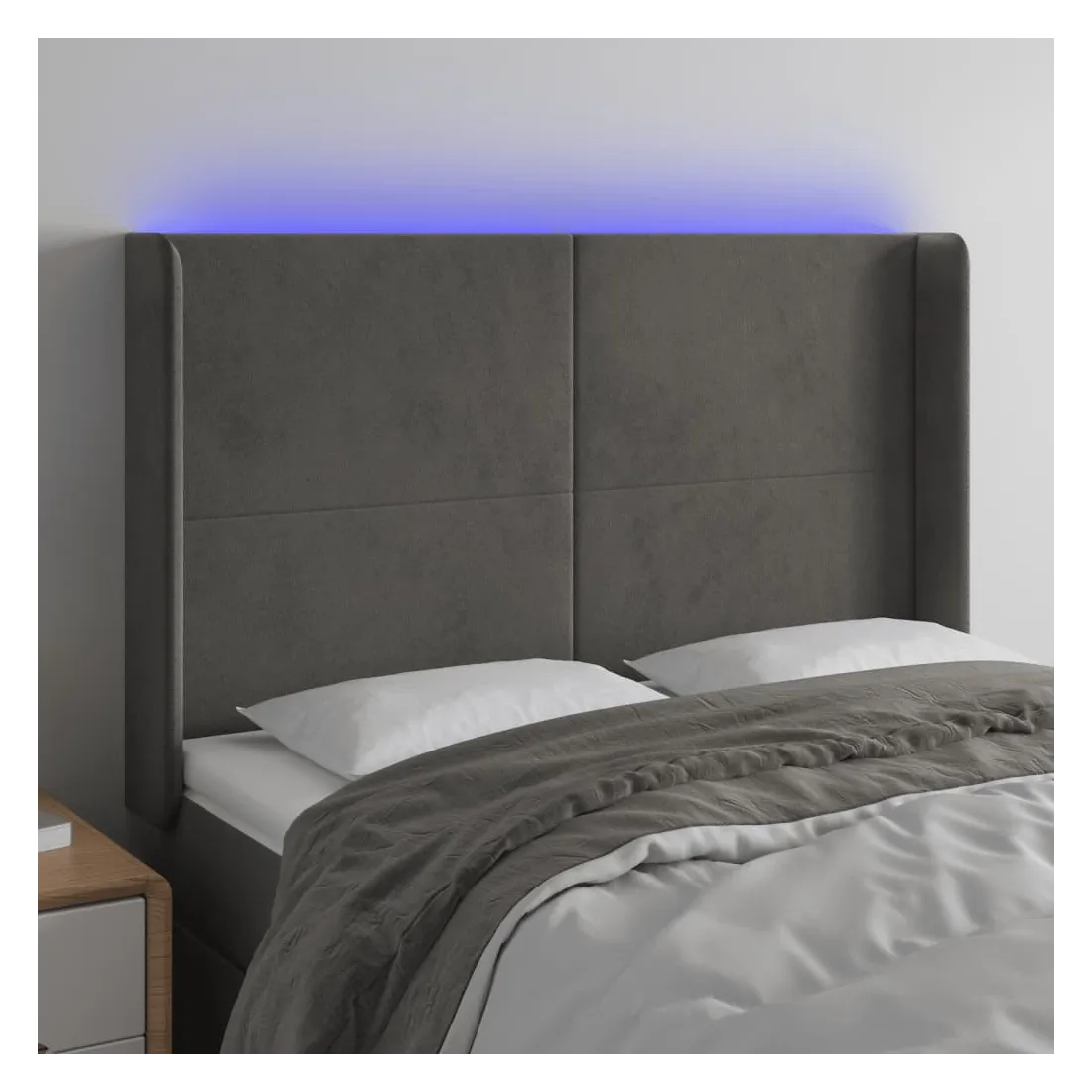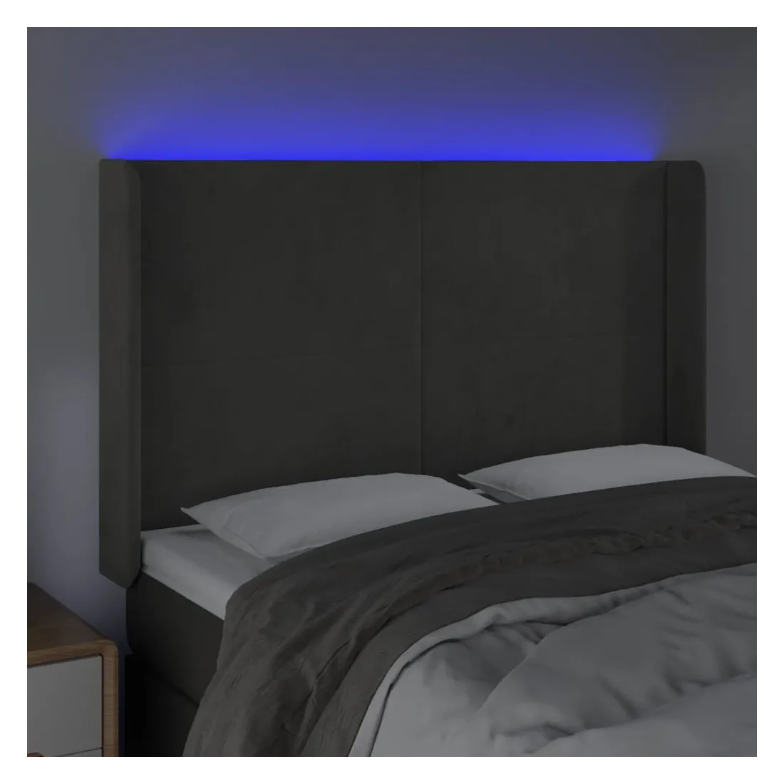 Cette tête de lit à LED classique, au design élégant, donne à votre cadre de lit une touche de modernité étonnante et convient parfaitement à toute chambre à coucher. Velours doux : le velours est un tissu doux et luxueux qui se reconnaît à son tas dense de fibres uniformément coupées qui ont une touche lisse. Le tissu en velours présente un toucher doux distinctif, ce qui le rend confortable au toucher.LED colorée : apportez de l'éclairage dans l'obscurité avec des lumières LED colorées !Hauteur réglable : la tête de lit est réglable en hauteur selon vos préférences.Excellent soutien : la tête de lit vous offre un excellent soutien du dos lorsque vous êtes assis dans votre lit pour lire ou regarder la télévision.Bande à LED découpable : cette bande à LED flexible peut être ajustée en longueur. Le symbole des ciseaux indique où la bande peut être coupée en toute sécurité sans l'endommager. Remarque :Seule la partie avec un symbole de ciseaux peut être coupée et seule la partie avec l'USB continuera à fonctionner comme avant.Chaque produit est livré avec un manuel de montage dans la boîte pour un montage facile.Ce produit est doté d'un connecteur USB, mais la source d'alimentation certifiée de USB 5V n'est pas incluse.