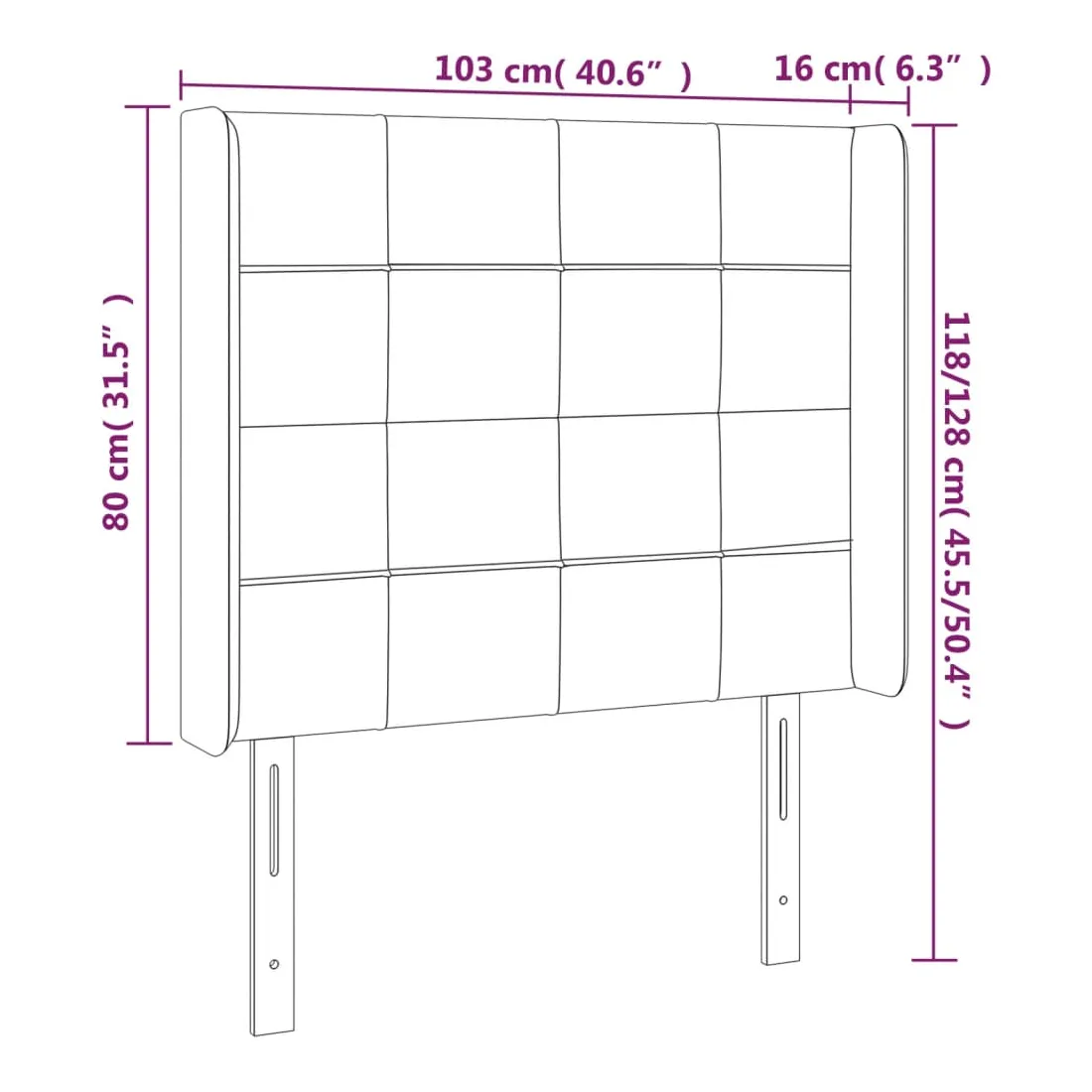 - 103 x 16 x 118/128 cm