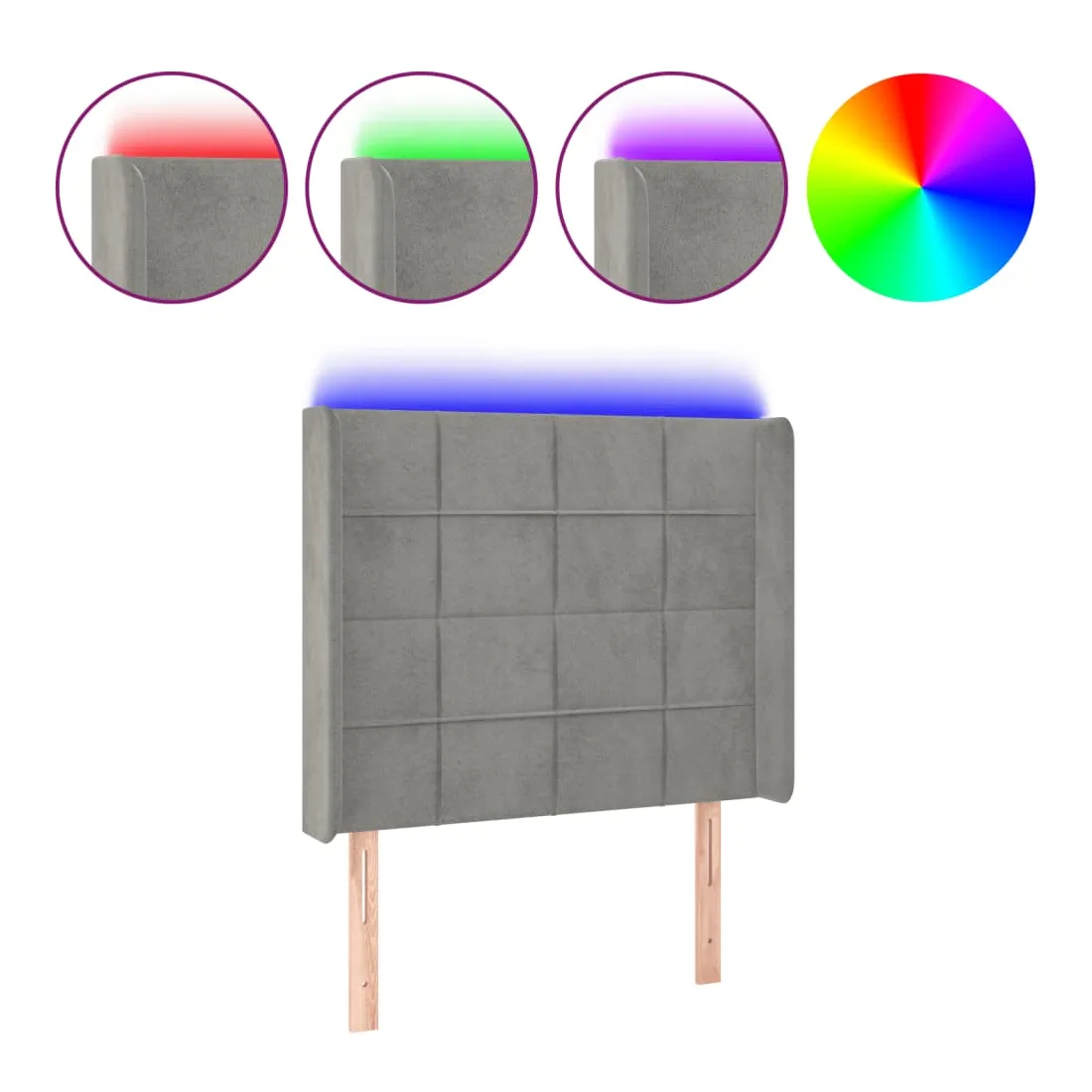 Tête de lit à LED Gris clair 93x16x118/128 cm Velours