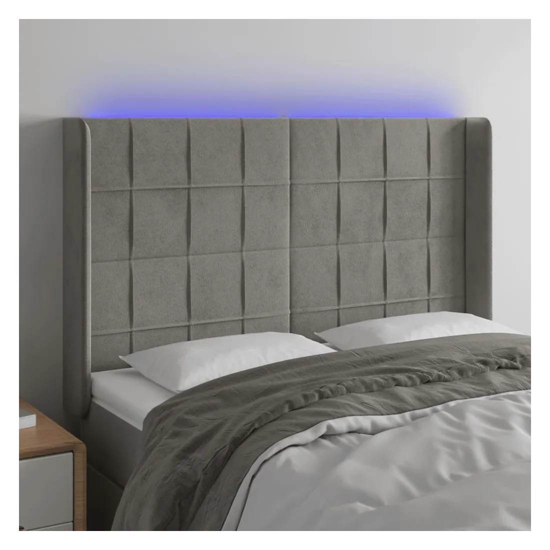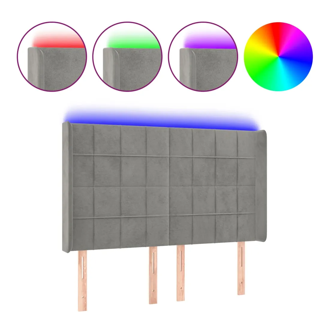 Tête de lit à LED Gris clair 147x16x118/128 cm Velours