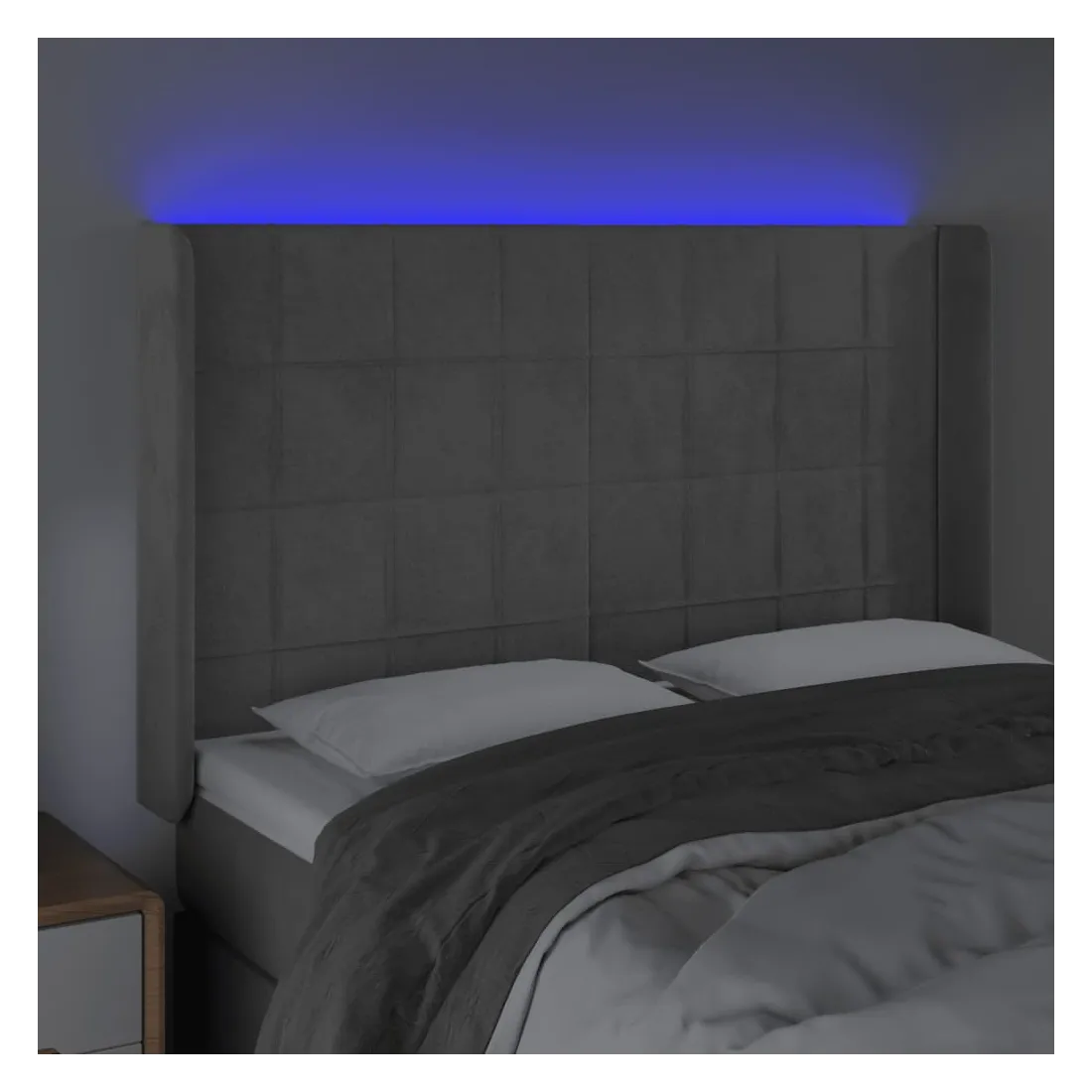 Cette tête de lit à LED classique, au design élégant, donne à votre cadre de lit une touche de modernité étonnante et convient parfaitement à toute chambre à coucher. Velours doux : le velours est un tissu doux et luxueux qui se reconnaît à son tas dense de fibres uniformément coupées qui ont une touche lisse. Le tissu en velours présente un toucher doux distinctif, ce qui le rend confortable au toucher.LED colorée : apportez de l'éclairage dans l'obscurité avec des lumières LED colorées !Hauteur réglable : la tête de lit est réglable en hauteur selon vos préférences.Excellent soutien : la tête de lit vous offre un excellent soutien du dos lorsque vous êtes assis dans votre lit pour lire ou regarder la télévision.Bande à LED découpable : cette bande à LED flexible peut être ajustée en longueur. Le symbole des ciseaux indique où la bande peut être coupée en toute sécurité sans l'endommager. Remarque :Seule la partie avec un symbole de ciseaux peut être coupée et seule la partie avec l'USB continuera à fonctionner comme avant.Chaque produit est livré avec un manuel de montage dans la boîte pour un montage facile.Ce produit est doté d'un connecteur USB, mais la source d'alimentation certifiée de USB 5V n'est pas incluse.