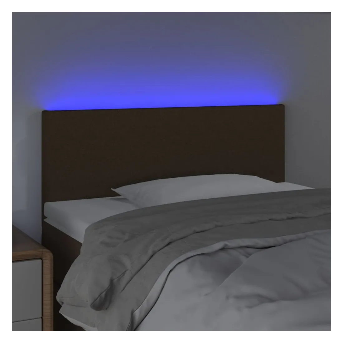 Cette tête de lit à LED classique, au design élégant, donne à votre cadre de lit une touche de modernité étonnante et convient parfaitement à toute chambre à coucher. Tissu durable : le tissu présente un aspect simple et épuré, et il est respirant et durable. LED colorée : apportez de l'éclairage dans l'obscurité avec des lumières LED colorées ! Hauteur réglable : la tête de lit est réglable en hauteur selon vos préférences. Excellent soutien : la tête de lit vous offre un excellent soutien du dos lorsque vous êtes assis dans votre lit pour lire ou regarder la télévision. Bande à LED découpable : cette bande à LED flexible peut être ajustée en longueur. Le symbole des ciseaux indique où la bande peut être coupée en toute sécurité sans l'endommager. Remarque : Seule la partie avec un sy