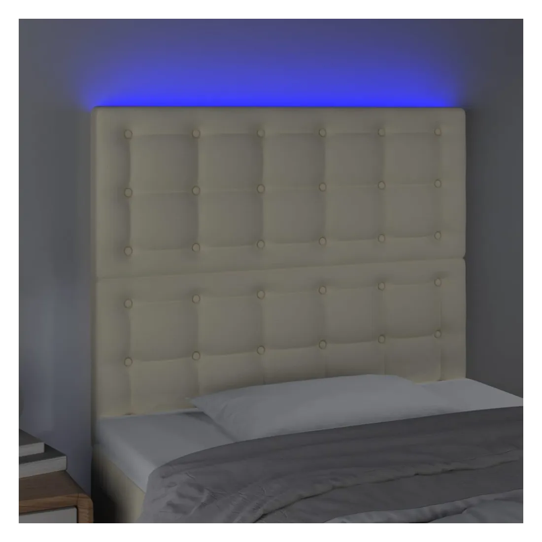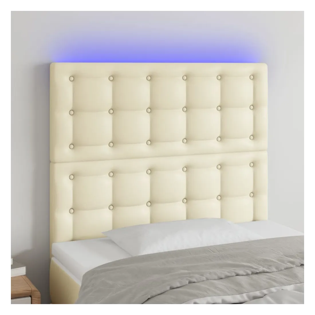 Cette tête de lit à LED classique, au design élégant, donne à votre cadre de lit une touche de modernité étonnante et convient parfaitement à toute chambre à coucher. Similicuir durable : le similicuir de qualité supérieure est un matériau très durable. Il est résistant aux taches, ce qui le rend facile à nettoyer avec un chiffon humide. La surface lisse donne également un aspect luxueux et la beauté du cuir véritable.LED colorée : apportez de l'éclairage dans l'obscurité avec des lumières LED colorées !Hauteur réglable : la tête de lit est réglable en hauteur selon vos préférences.Excellent soutien : la tête de lit vous offre un excellent soutien du dos lorsque vous êtes assis dans votre lit pour lire ou regarder la télévision.Bande à LED découpable : cette bande à LED flexible peut être ajustée en longueur. Le symbole des ciseaux indique où la bande peut être coupée en toute sécurité sans l'endommager. Remarque :Seule la partie avec un symbole de ciseaux peut être coupée et seule la partie avec l'USB continuera à fonctionner comme avant.Chaque produit est livré avec un manuel de montage dans la boîte pour un montage facile.Ce produit est doté d'un connecteur USB, mais la source d'alimentation certifiée de USB 5V n'est pas incluse.