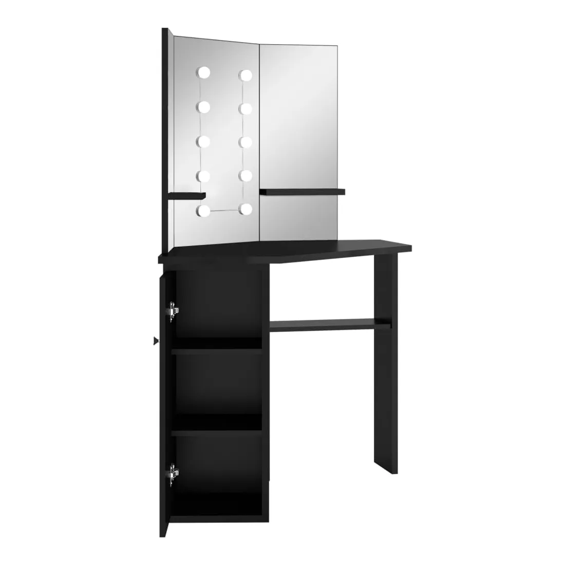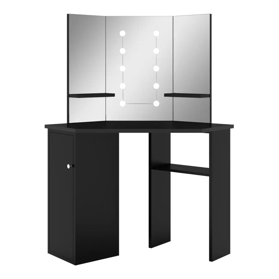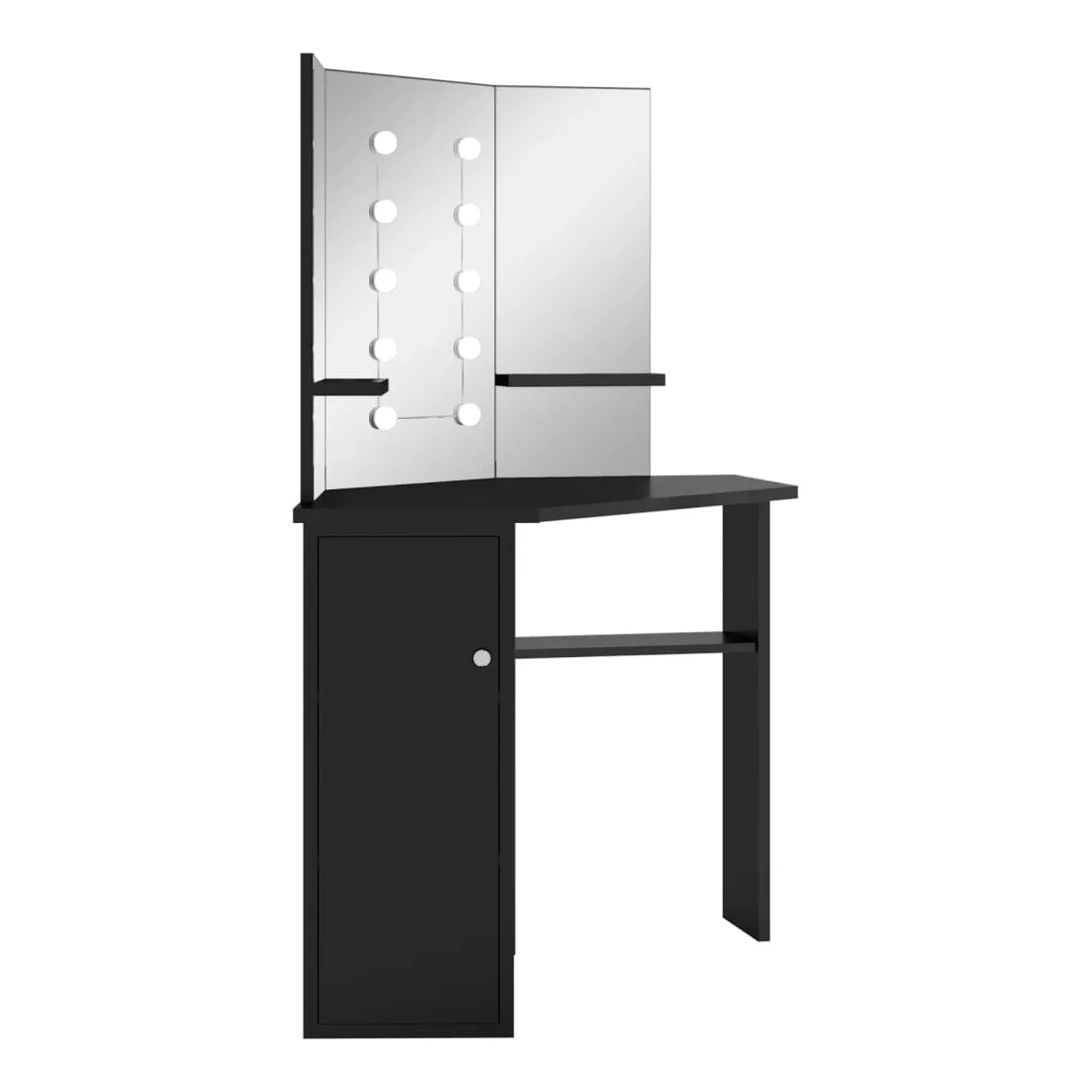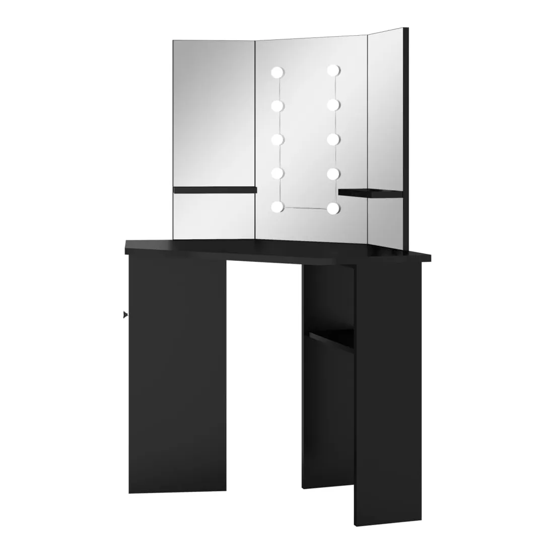 Faites votre routine matinale avec style avec cette coiffeuse élégante ! Cette coiffeuse, fabriquée à partir de MDF de qualité, présente une forme élégante et concise avec un style moderne. Elle est conçue pour s'intégrer parfaitement dans un coin tout en offrant beaucoup de rangement dans un petit espace ! Un casier large et une étagère ouverte sous la table offrent une place pour les articles de maquillage et gardent tout à sa place, face sur le côté pour un accès facile lorsque vous êtes assise à la table. De plus, un magnifique miroir à 3 panneaux offre une vue sur 3 côtés pour l'application du maquillage et ajoute une touche élégante au dessus de la table. Des étagères inférieures sont ajoutées aux deux panneaux latéraux pour les tasses, les pinceaux de maquillage, les crèmes et les lotions, les parfums et les objets de décoration. Les ampoules LED élégantes éclairent votre beauté également. Remarque : ce produit est doté d'un connecteur USB, mais la source d'alimentation certifiée de USB 5V n'est pas incluse.