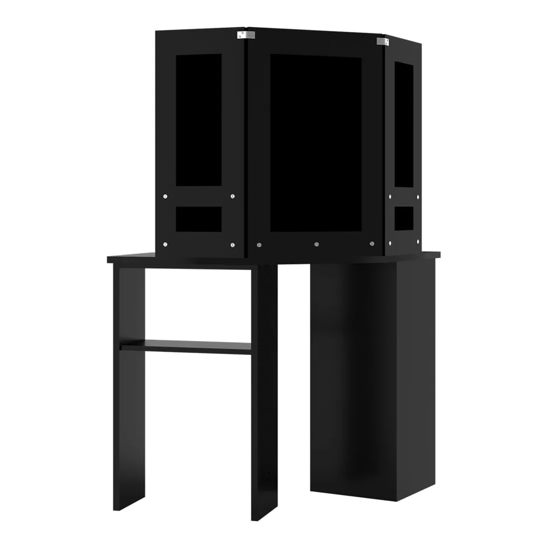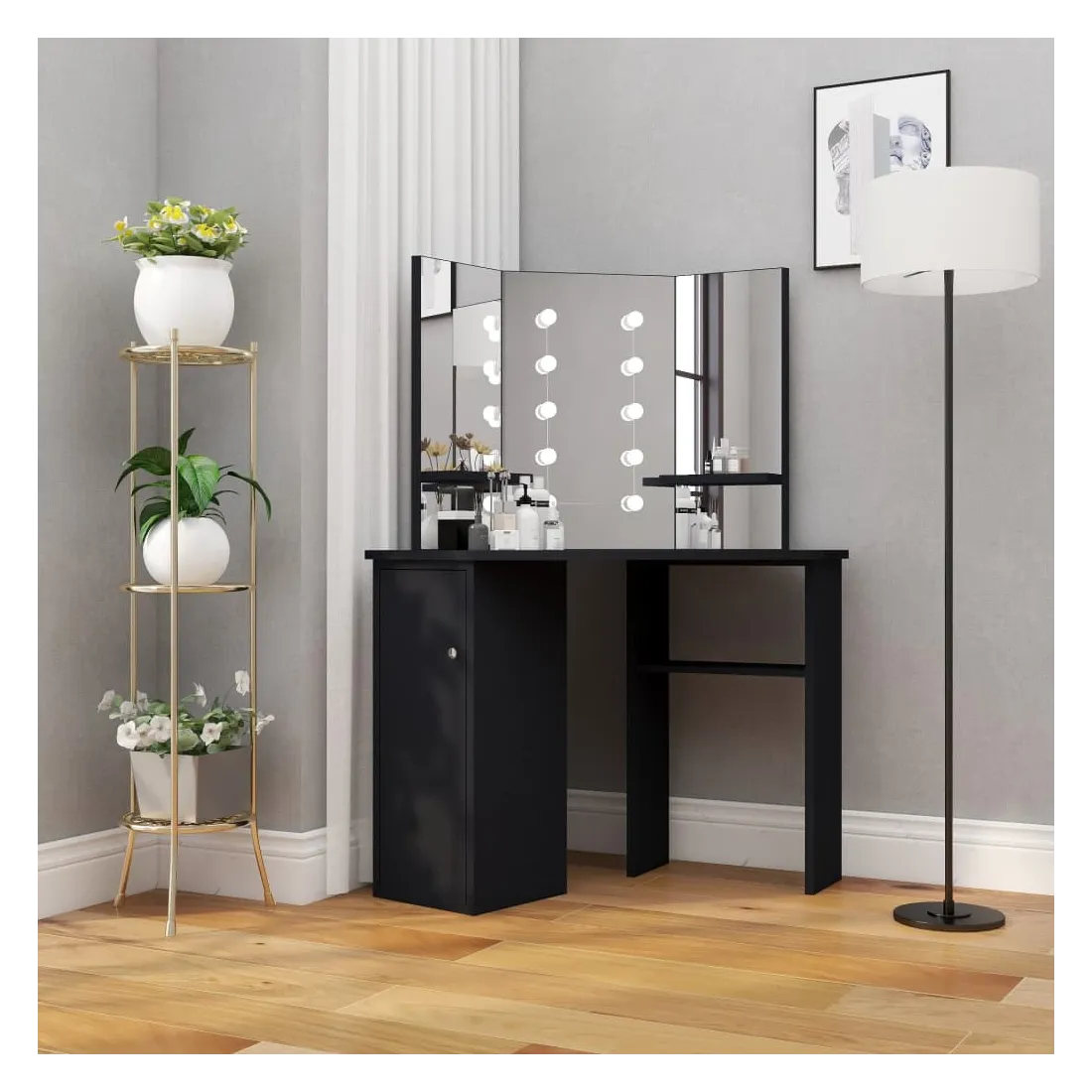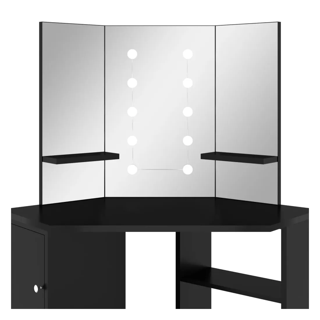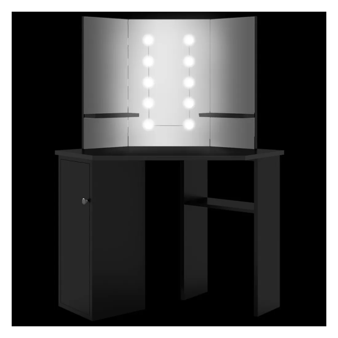 Faites votre routine matinale avec style avec cette coiffeuse élégante ! Cette coiffeuse, fabriquée à partir de MDF de qualité, présente une forme élégante et concise avec un style moderne. Elle est conçue pour s'intégrer parfaitement dans un coin tout en offrant beaucoup de rangement dans un petit espace ! Un casier large et une étagère ouverte sous la table offrent une place pour les articles de maquillage et gardent tout à sa place, face sur le côté pour un accès facile lorsque vous êtes assise à la table. De plus, un magnifique miroir à 3 panneaux offre une vue sur 3 côtés pour l'application du maquillage et ajoute une touche élégante au dessus de la table. Des étagères inférieures sont ajoutées aux deux panneaux latéraux pour les tasses, les pinceaux de maquillage, les crèmes et les lotions, les parfums et les objets de décoration. Les ampoules LED élégantes éclairent votre beauté également. Remarque : ce produit est doté d'un connecteur USB, mais la source d'alimentation certifiée de USB 5V n'est pas incluse.