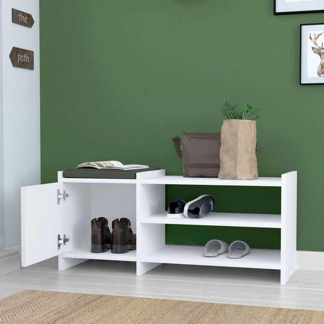 Banco zapatero Alexandra House Living Blanco Gris 100 x 44 x 35 cm 2 Estantes 1 puerta