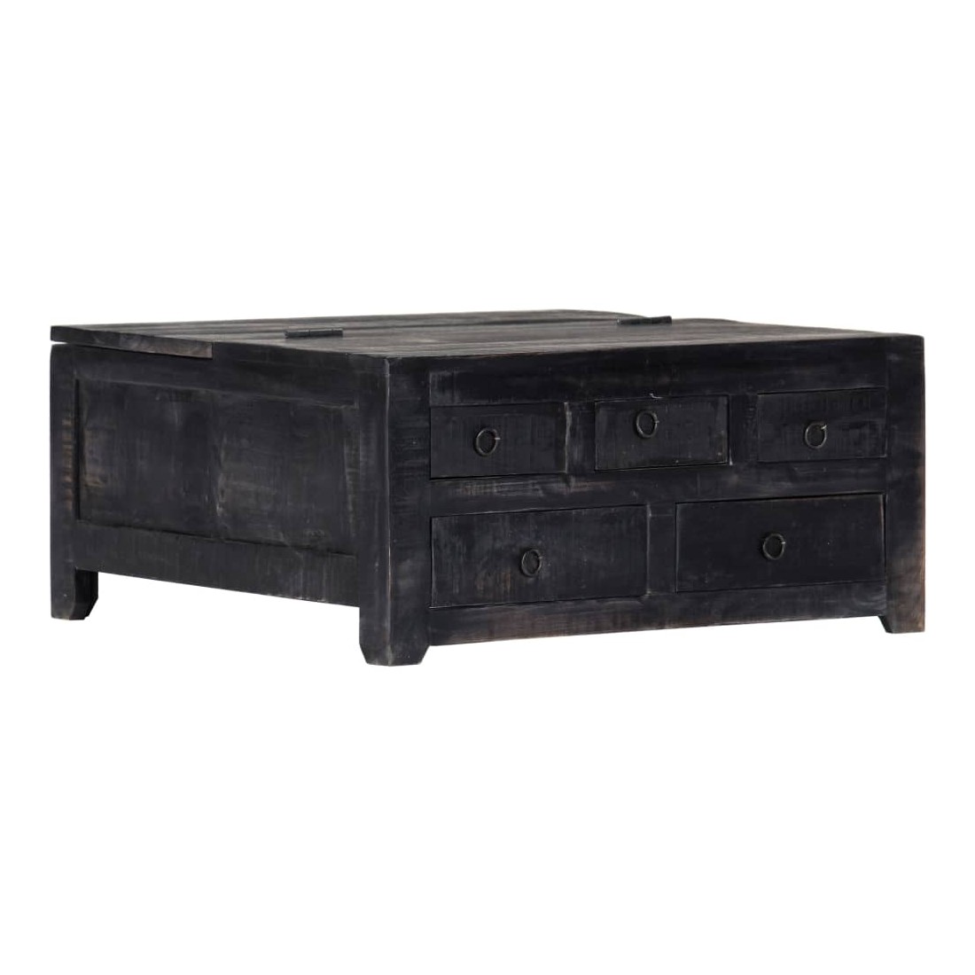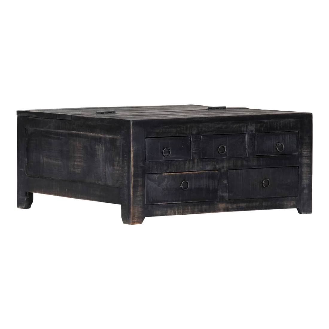 Présentant un charme rustique, cette superbe table basse en bois ajoutera une touche intemporelle à votre décoration. Son dessus de table solide offre une surface stable et sûre, sur laquelle vous pouvez placer des boissons, des vases, des coupes à fruits et autres ornements. Cette table basse pratique sera parfaite pour placer des appareils multimédia, des livres, des revues ou de petits objets que vous souhaitez garder à portée de main. Grâce à la construction robuste et au matériau en bois de manguier, la table est extrêmement durable. Le bois de manguier est un bois dur dense et robuste qui présente des stries et des contours beaux sur sa surface. Chaque étape du processus est réalisée avec le plus grand soin, que ce soit le polissage, la peinture ou le laquage. Elle comporte 5 tiroirs et une surface basculante pour ranger des bibelots et des appareils multimédia, des consoles de jeu et des revues. Détendez-vous et passez du bon temps avec votre famille et vos amis autour de cette table basse unique ! Note importante : Les couleurs varient d'une pièce à l'autre, ce qui rend chaque pièce unique. La livraison est aléatoire, ce qui garantit l'exclusivité et l'individualité de votre produit.