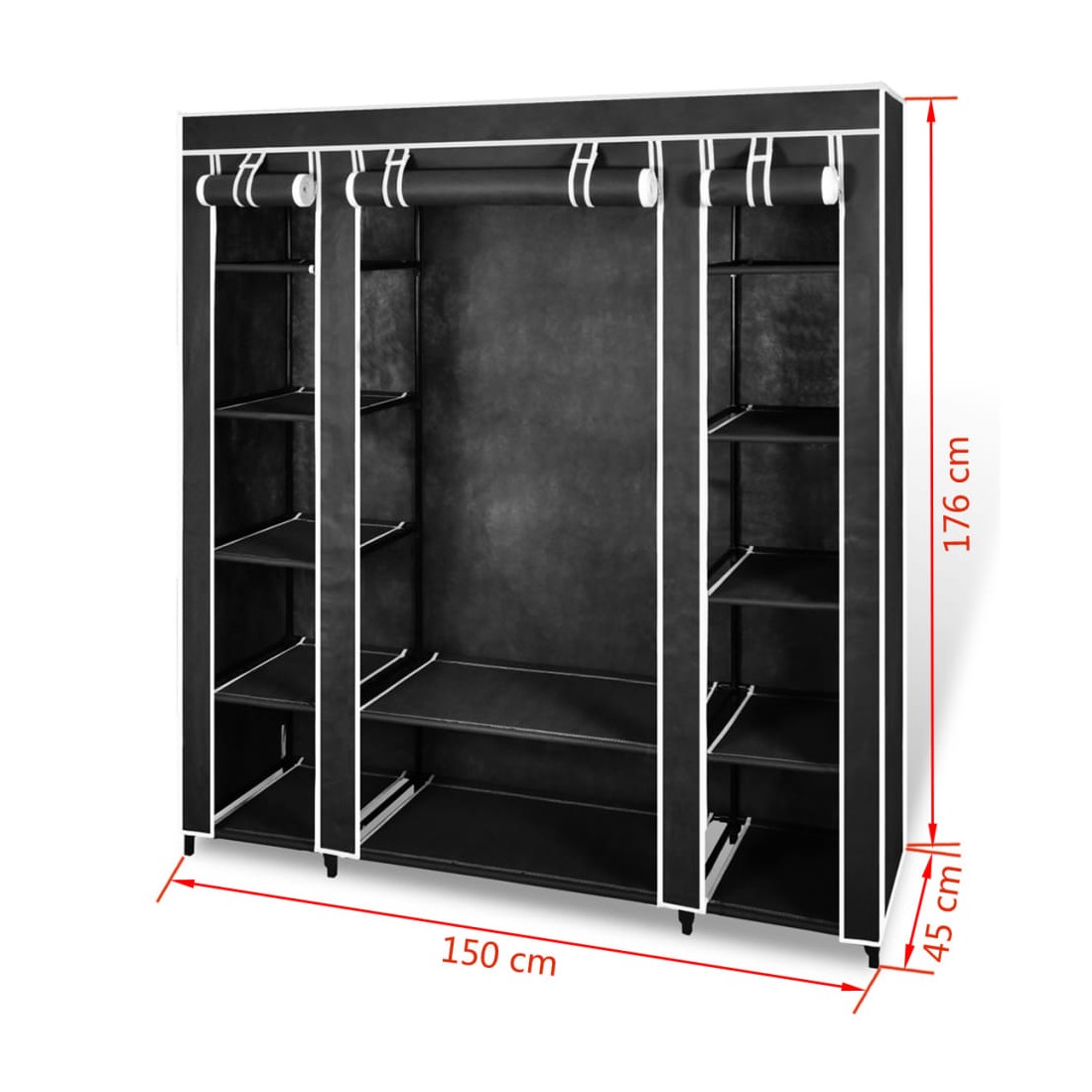 Armoire avec compartiments et tiges 45 x 150 x 176 cm Noir
