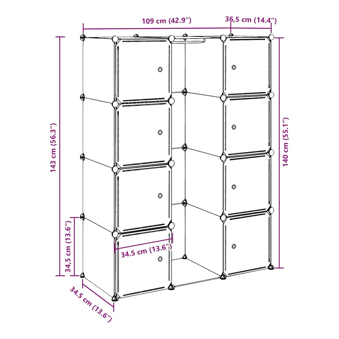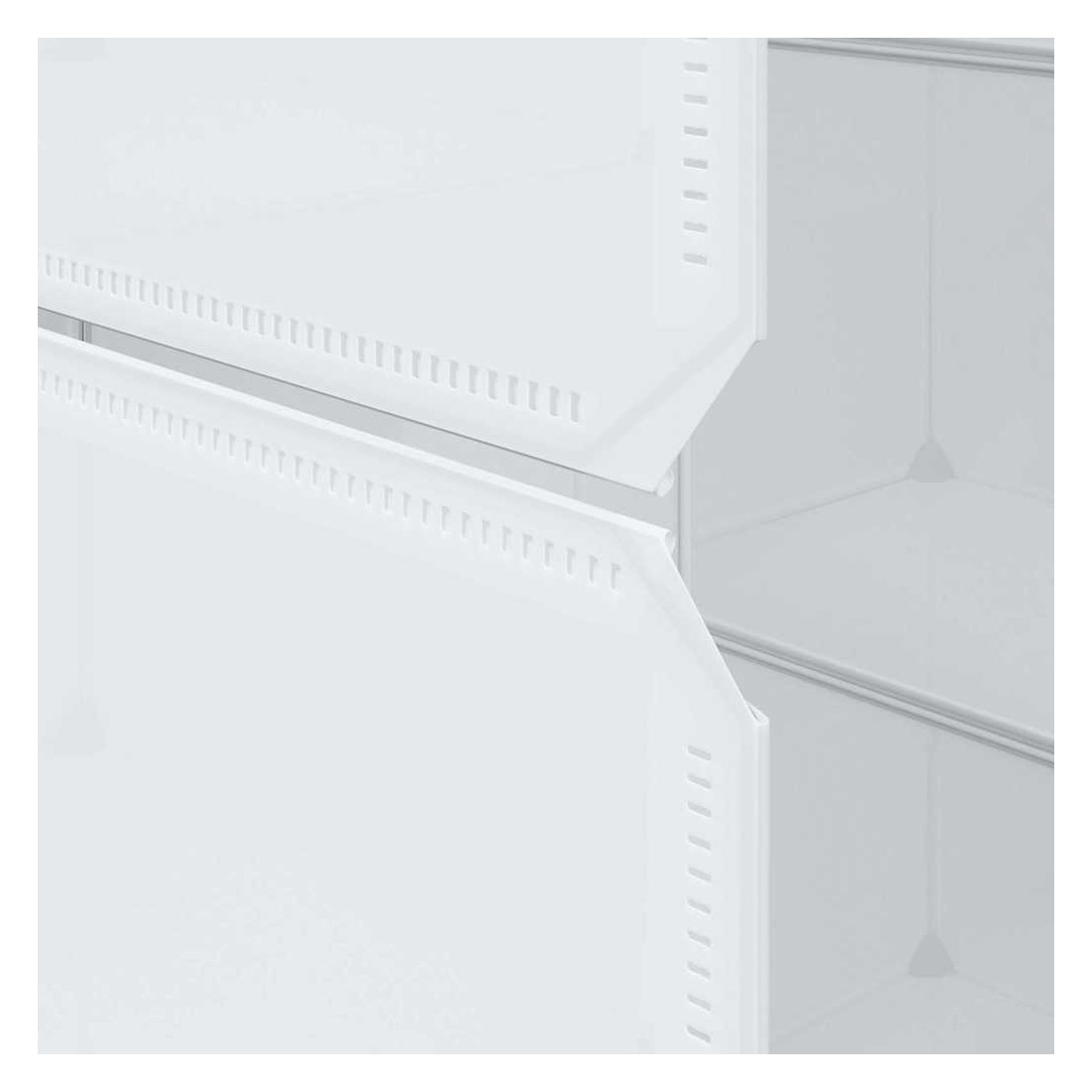 Cette armoire modulaire fonctionnelle est non seulement très élégante, mais elle permet de ranger vos vêtements et vos chaussures de manière ordonnée. Elle sera un excellent complément à votre chambre d'enfant, votre salon, votre couloir ou votre chambre à coucher. L'armoire est composée d'éléments en plastique et de fil d'acier chromé, ce qui facilite son nettoyage. Grâce à sa conception astucieuse, l'armoire peut être installée rapidement et facilement dans différentes configurations, en fonction de l'espace ou de votre humeur. Veuillez éviter de trop solliciter les étagères et notez que le plastique est inflammable.