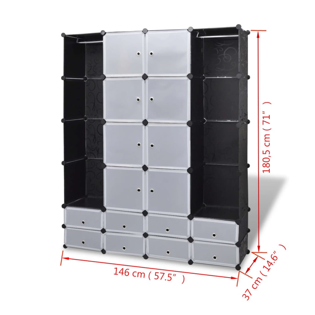Armoire modulaire 18 compartiments Noir et blanc 37x146x180,5cm