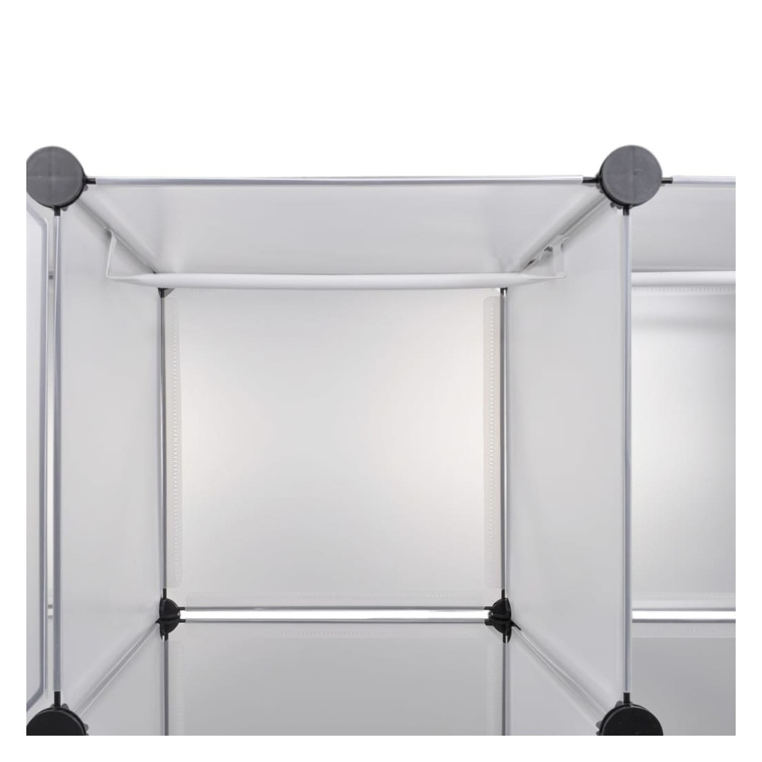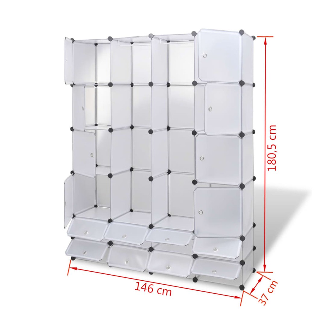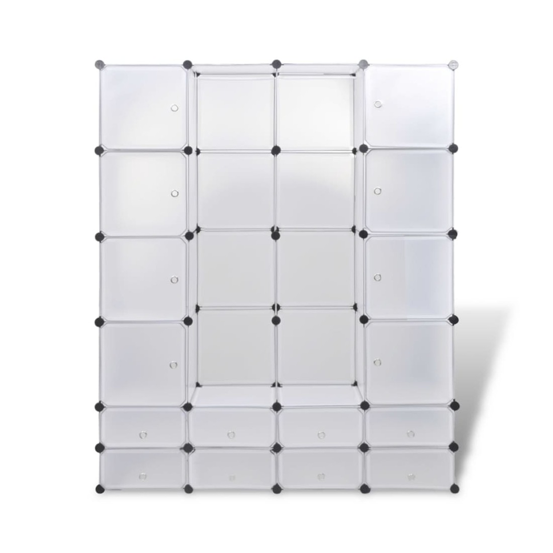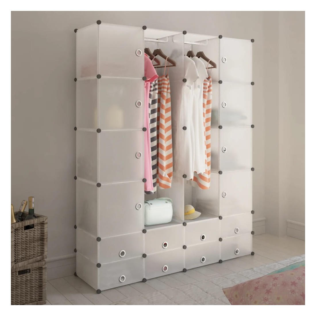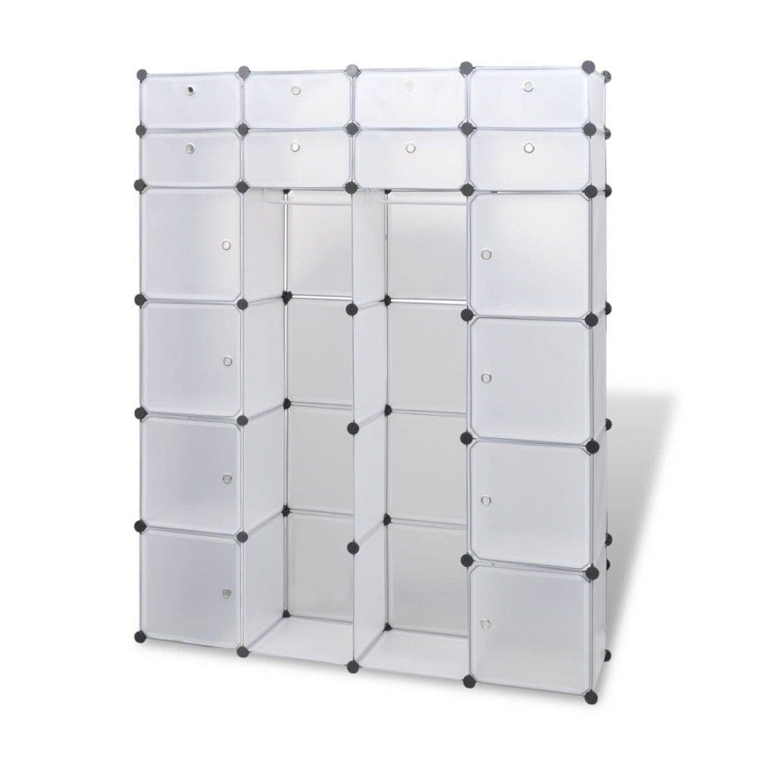Cette armoire modulaire fonctionnelle est non seulement très élégante, mais gardera vos vêtements et chaussures bien organisés. Elle s'intégrera parfaitement dans votre chambre d'enfant, votre salon, votre couloir ou votre chambre à coucher. L'armoire est composée d'éléments en plastique et de fils d'acier chromé, ce qui la rend facile à nettoyer. Grâce à sa conception astucieuse, l'armoire peut être installée rapidement et facilement dans différentes configurations, en fonction de l'espace ou de votre humeur.Évitez de trop solliciter les étagères et notez que le plastique est inflammable.