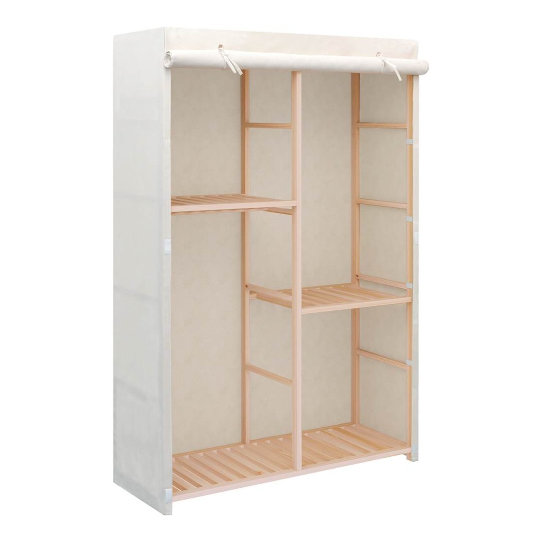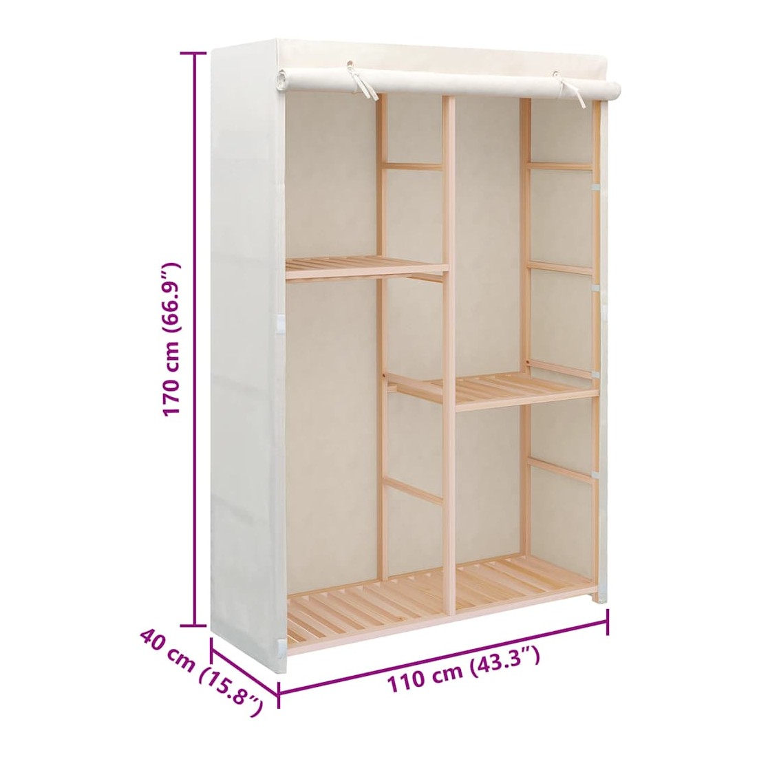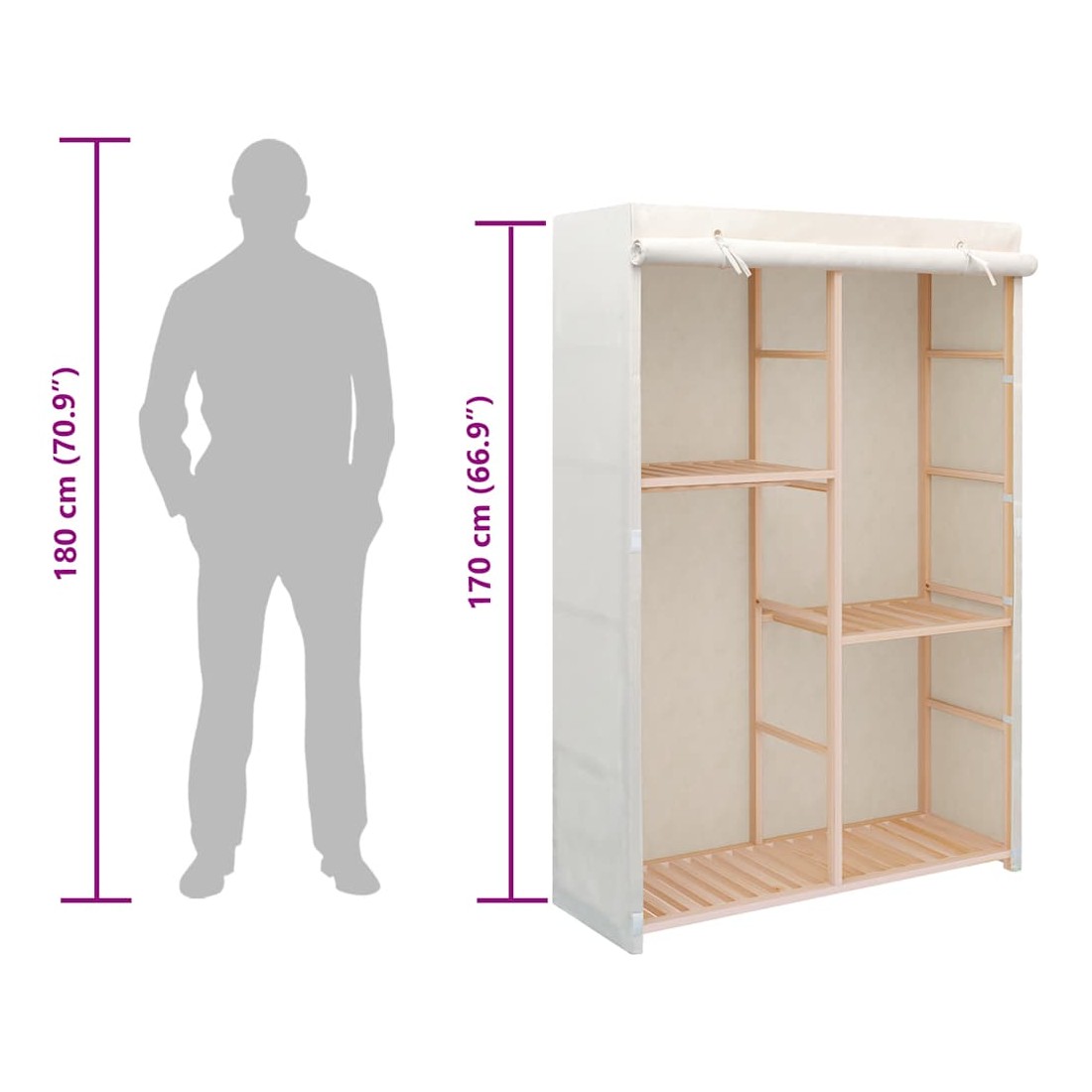 Nos garde-robe fonctionnelle est non seulement une solution de rangement parfaite pour vos vêtements, chaussures, accessoires, elle constitue également un supplément décoratif unique à votre maison grâce à son design élégant et chaleureux. Les 3 niveaux sont parfaits pour ranger des vêtements, des serviettes ou des chaussures. Il y a un rail pour suspendre des blouses, des chemises, des pantalons ou des vestes. Le cadre en bois assure la stabilité. L'assemblage est facile.
