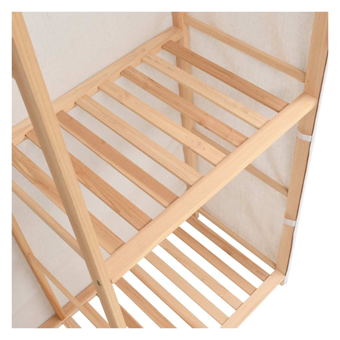 - Matériau : bois de sapin solide et tissu