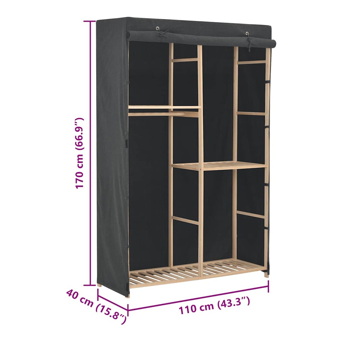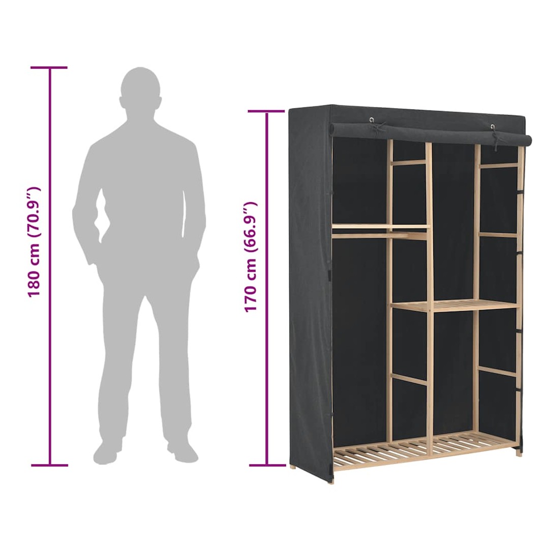 Notre garde-robe fonctionnelle est non seulement une solution de rangement parfaite pour vos vêtements, chaussures, accessoires. De plus, elle ajoutera également un supplément décoratif unique à votre maison grâce à son design élégant et chaleureux. Les 3 niveaux sont parfaits pour ranger des vêtements, des serviettes ou des chaussures. Il y a un rail pour suspendre des blouses, des chemises, des pantalons ou des vestes. De plus, le cadre en bois assure la stabilité. L'assemblage est facile.