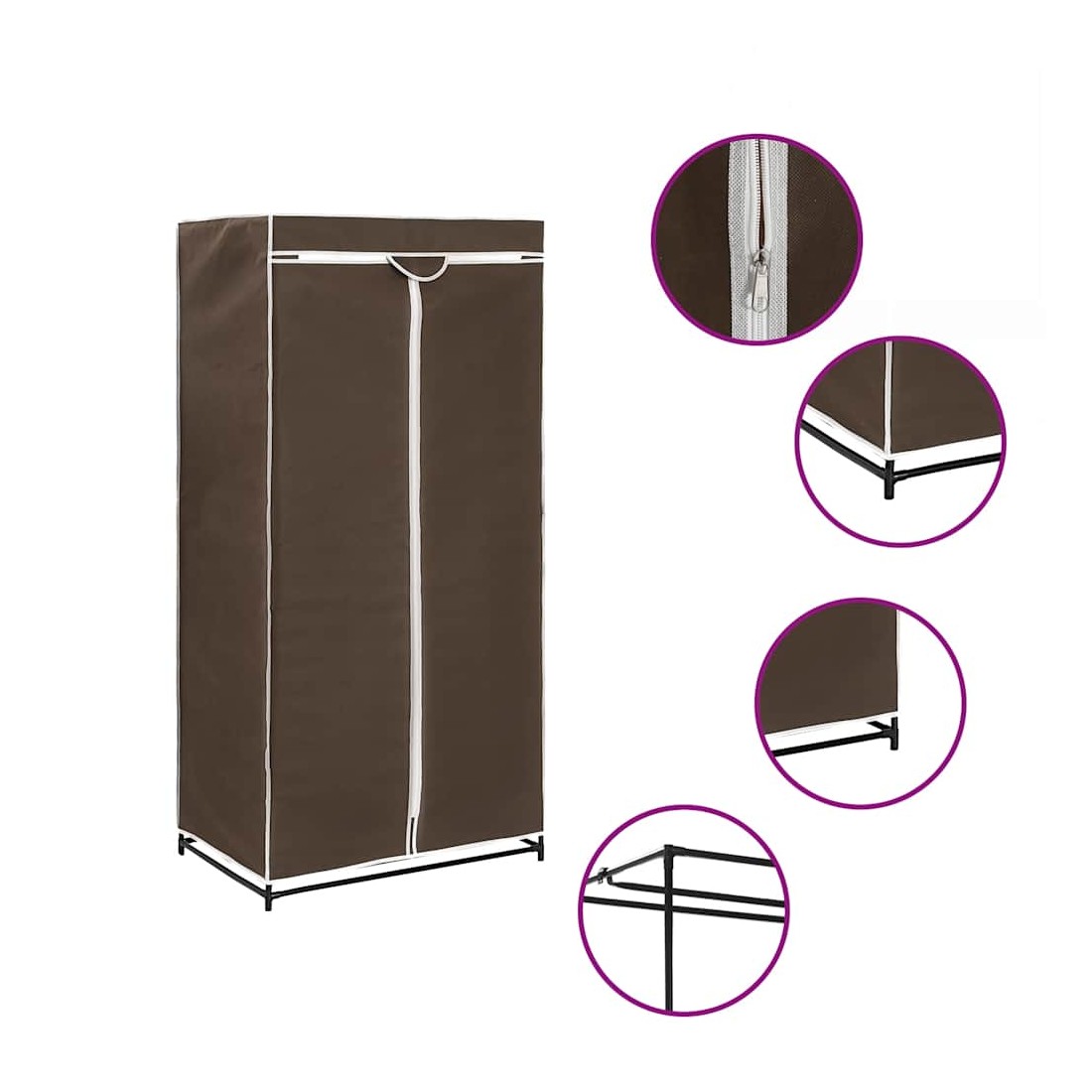 Avec un cadre en fer robuste et un revêtement en tissu avec fermetures à glissière, cette armoire peut protéger vos vêtements de la saleté et de la poussière. Le système de plug-in pratique permet de monter cette armoire sans perçage ni vissage. Le cadre de base est constitué de tubes en fer robustes, reliés entre eux par des connecteurs. La housse en tissu est en polyester respirant. La garde-robe se compose d’une partie principale avec une tringle à vêtements. La livraison comprend 2 portants à vêtements.