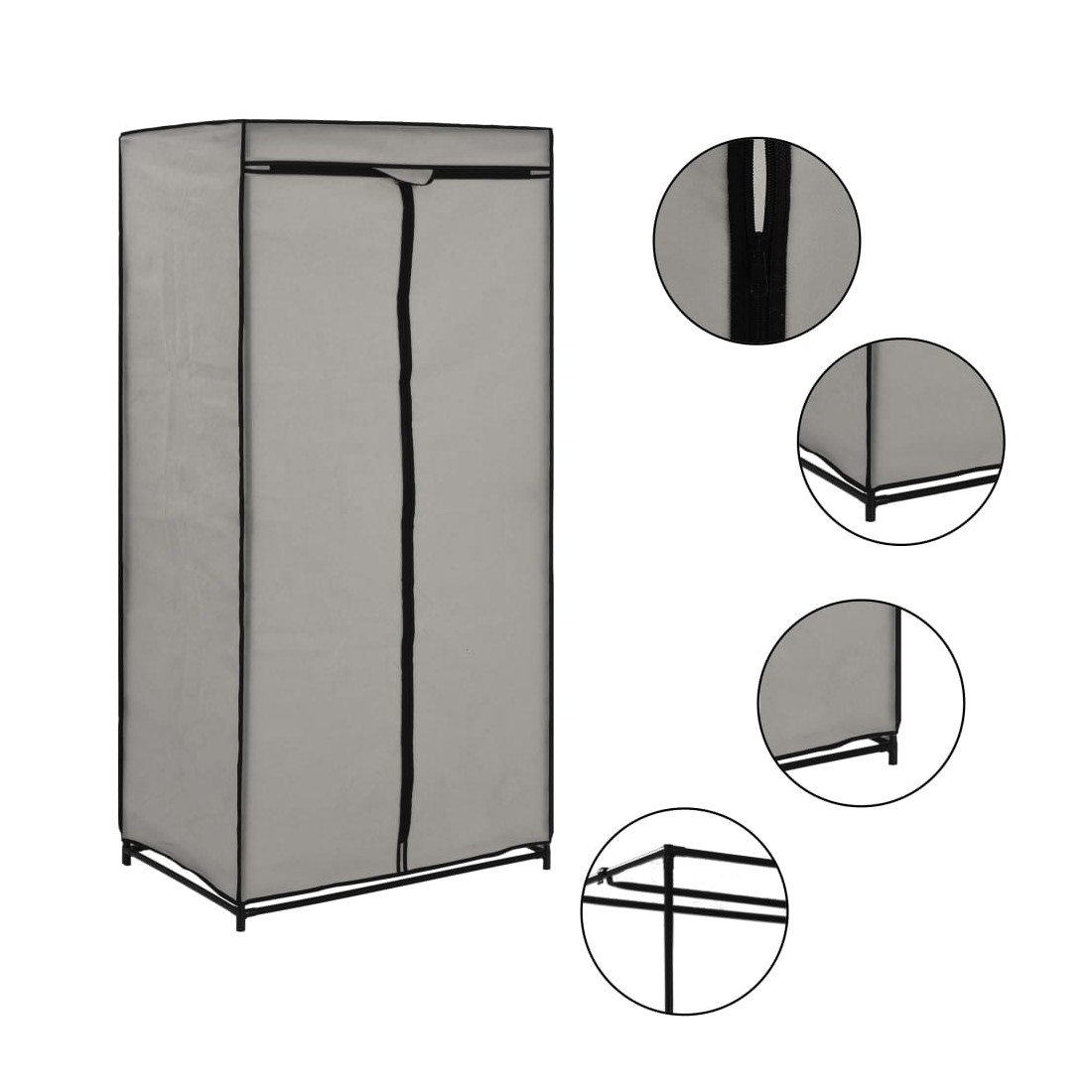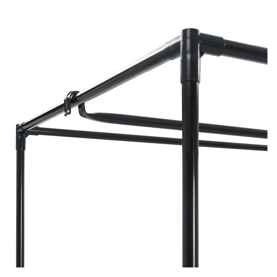 Avec un cadre en fer robuste et un revêtement en tissu avec fermetures à glissière, cette armoire peut protéger vos vêtements de la saleté et de la poussière. Le système de plug-in pratique permet de monter cette armoire sans perçage ni vissage. Le cadre de base est constitué de tubes en fer robustes, reliés entre eux par des connecteurs. La housse en tissu est en polyester respirant. La garde-robe se compose d’une partie principale avec une tringle à vêtements. La livraison comprend 2 portants à vêtements.