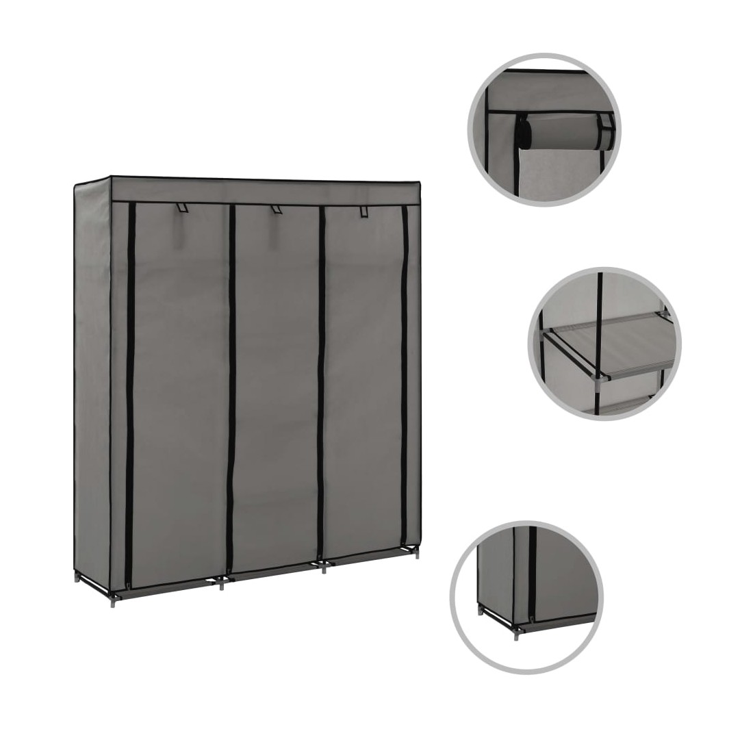 Présentant un design simple mais pratique, cette armoire portable est conçue pour protéger vos vêtements et vos chaussures de la poussière et de la saleté, que ce soit au sous-sol, dans la chambre des enfants, la chambre à coucher ou dans le grenier. Dans cette armoire, plusieurs compartiments et barres sont disponibles en fonction de diverses caractéristiques, avec le couvercle enroulable fixé avec des attaches à boucles et à crochets et les fermetures à glissière permettant d'ouvrir et de fermer facilement le couvercle. La garde-robe pliable est fabriquée en tissu non tissé durable et en tubes de fer résistant à l'humidité, ce qui la rend résistante au fil du temps, peu encombrante et facile à assembler. Faites tourner lentement le tube de fer dans le connecteur au lieu de pousser le tuyau de fer directement dans le joint tout en raccordant les tuyaux de fer et les raccords en plastique.