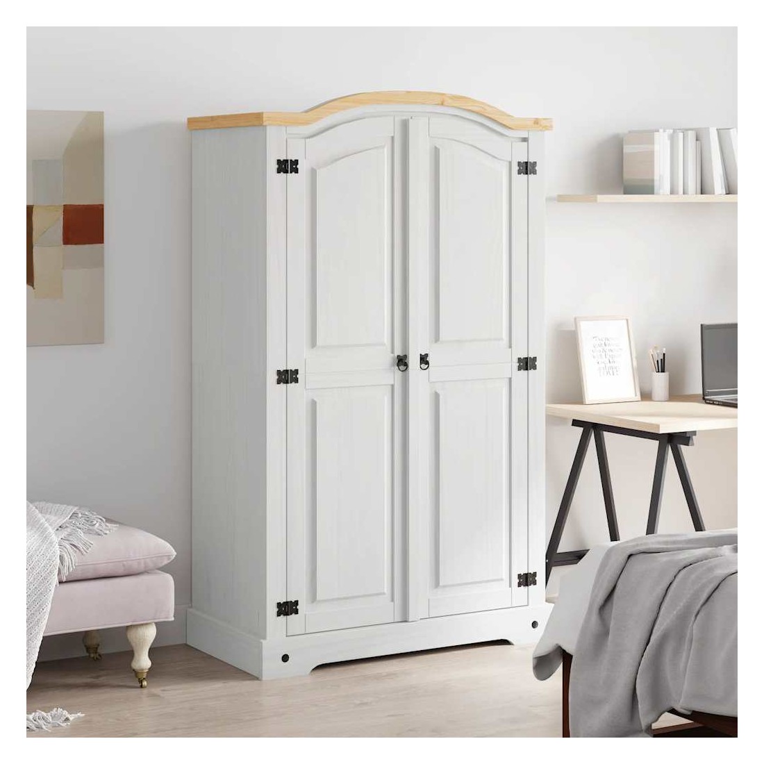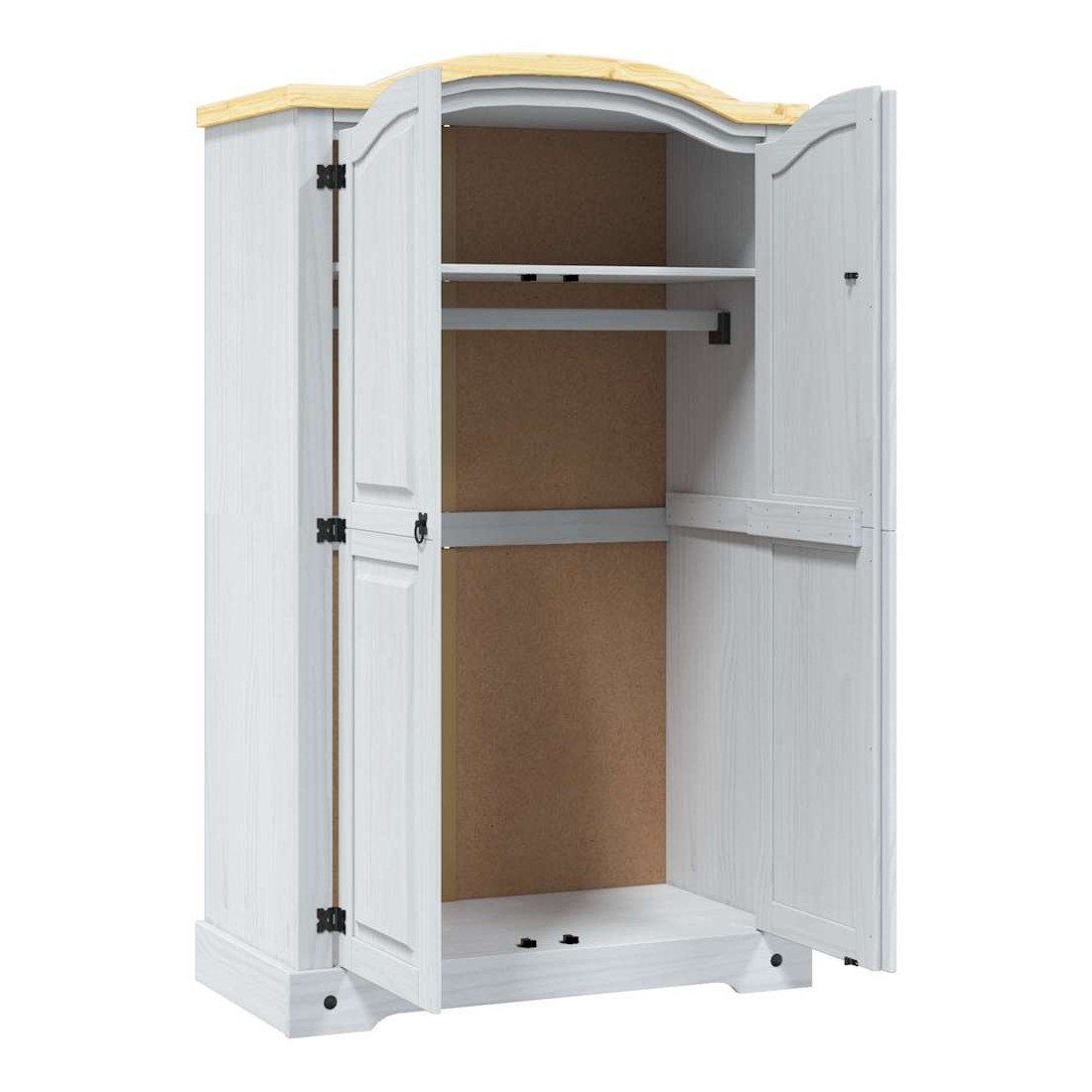 Cette garde-robe en bois de haute qualité est un meuble dans le style mexicain « Corona ». Le pin ciré avec des détails en métal noir dégage un charme mexicain rustique qui fera de la garde-robe un excellent supplément à votre chambre à coucher ou vestiaire. La garde-robe possède un magnifique design de dessus en forme de dôme et 2 portes. Fabriquée à partir de bois de pin massif, elle est solide et robuste. Le placard dispose d’un grand espace de rangement avec une étagère supérieure et une barre de penderie, offrant beaucoup d’espace pour organiser vos vêtements. L'assemblage est vraiment facile.