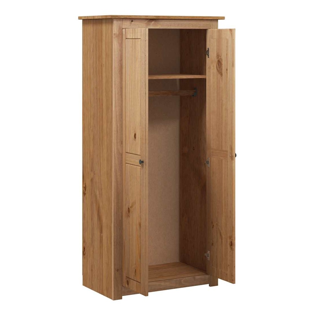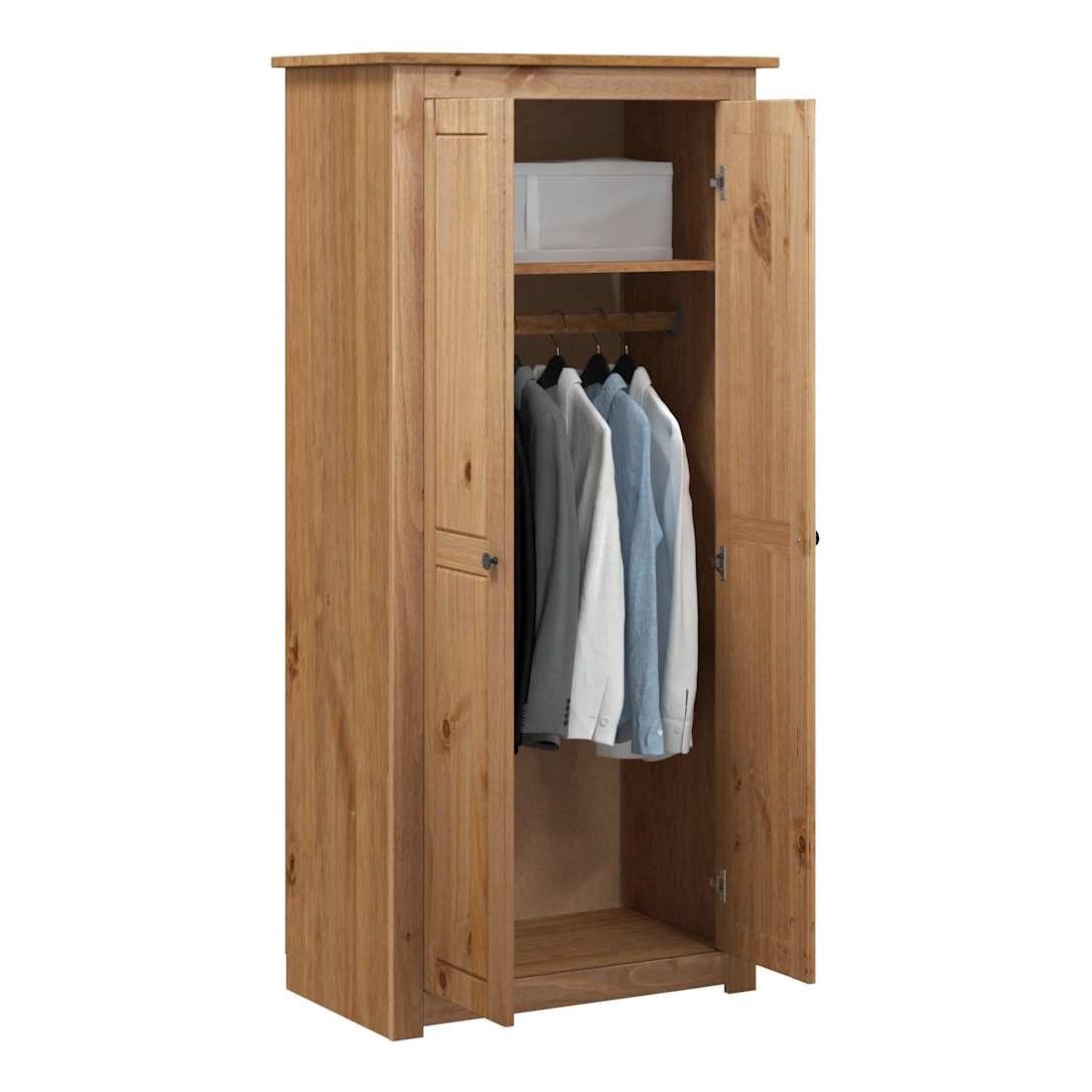 Avec un design compact, cette armoire offrira un grand espace de rangement et gardera vos vêtements, chaussures et accessoires bien rangés. Bois de pin massif : le bois de pin massif est un matériau naturel magnifique. Le bois de pin a un grain droit et les nœuds donnent au matériau son aspect caractéristique et rustique. Fabriquée en bois de pin massif, l'armoire de rangement est durable et robuste.Grand espace de rangement : cette armoire avec étagère fixe vous offre suffisamment d'espace pour vos tenues plus longues et autres vêtements ou accessoires pliés, tels que pulls, jeans, chapeaux, sacs à main, etc. De plus, le grand compartiment est équipé d'une barre de penderie afin que vous puissiez l'utiliser pour pour suspendre des trenchs, des robes, etc.Surface facile à nettoyer : la garde-robe est facile à nettoyer avec un chiffon humide.Design intemporel : cette armoire à vêtements présente des lignes épurées et simples, ainsi qu'un look minimaliste qui ajoute un style morden intemporel à votre décor intérieur actuel. Attention :Pour éviter qu'il ne bascule, ce produit doit être utilisé avec le dispositif de fixation murale fourni.