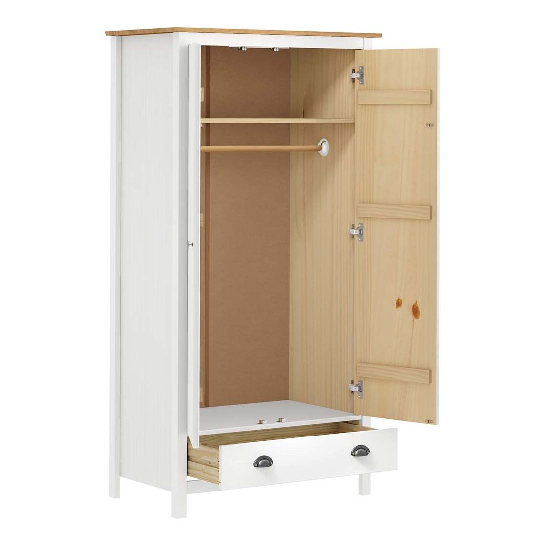 La garde-robe moderne en bois est conçue pour être un supplément intemporel à votre décoration intérieure. La garde-robe, en pin massif, est très solide. L'armoire à vêtements dispose d'un tiroir et d'une étagère, ce qui permet de garder les petits objets organisés et à portée de main. Elle dispose d'un grand compartiment équipé d'une penderie permettant d'accrocher des trenchs, des robes, etc. L'armoire est facile à assembler. L'armoire de chambre est également facile à nettoyer avec un chiffon sec.