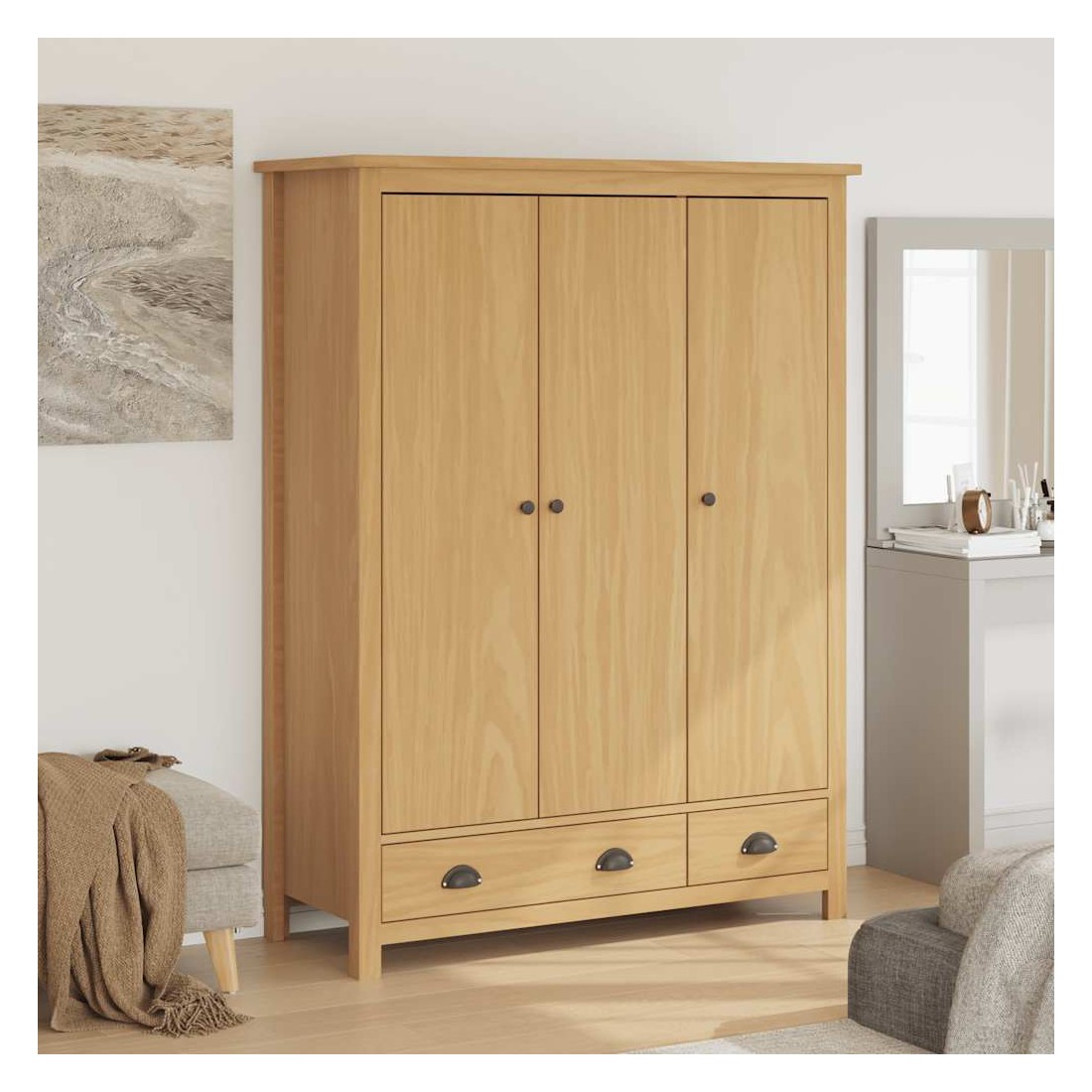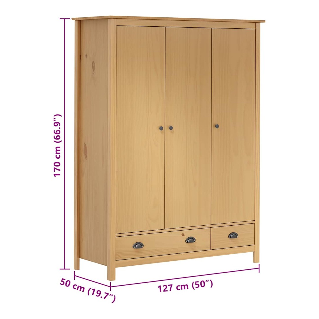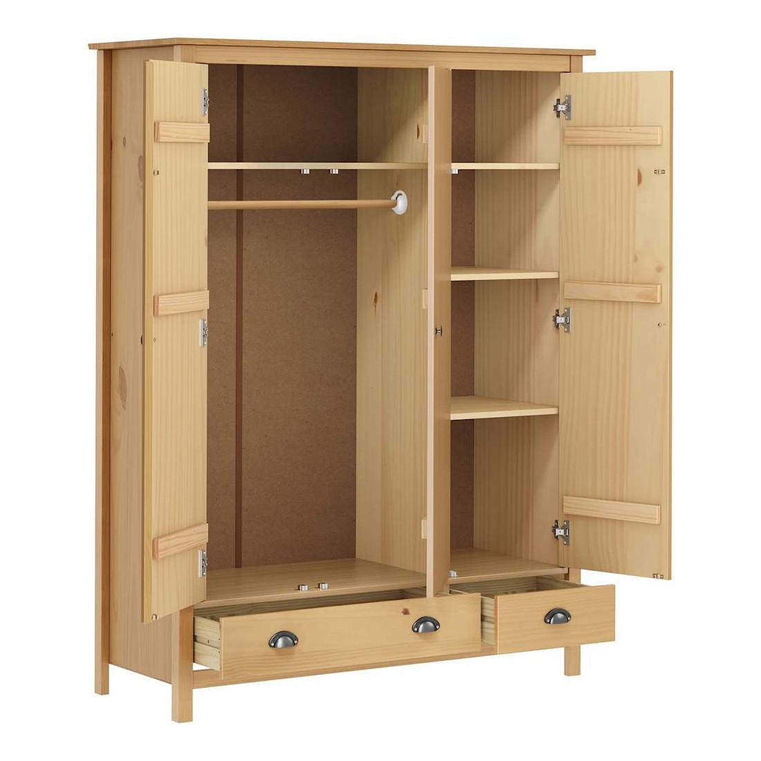 La garde-robe moderne est conçue pour être un supplément intemporel à votre décoration intérieure. La garde-robe moderne est conçue pour être un supplément intemporel à votre décoration intérieure. La garde-robe, en pin massif, est très solide. L'armoire à vêtements dispose dé 2 tiroirs et dé 5 étagères, ce qui permet de garder les petits objets organisés et à portée de main. Elle dispose d'un grand compartiment équipé d'une penderie permettant d'accrocher des trenchs, des robes, etc. L'armoire est facile à assembler. L'armoire de chambre est également facile à nettoyer avec un chiffon sec.