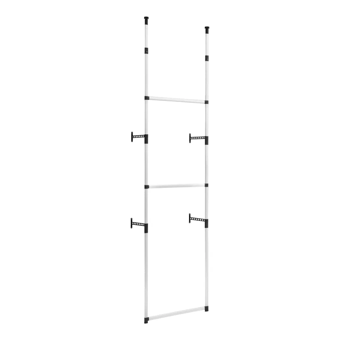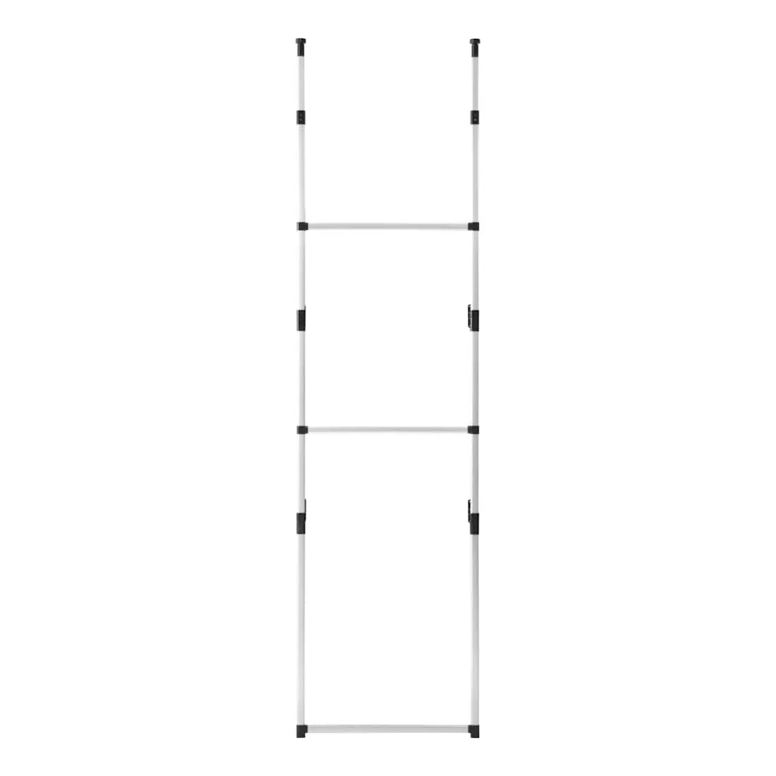 Notre portemanteau télescopique présente une conception simple pour économiser de l'espace dans votre chambre à cocher et dans toute autre pièce. Le système de garde-robe télescopique est en aluminium, ce qui le rend fort et robuste. Ce support de rangement peut être adaptable à différents aménagements spatiaux, grâce à son système télescopique et à la hauteur réglable. Il offre un moyen unique et ingénieux d'organiser votre garde-robe. Organisez vos vêtements et gardez votre pièce propre avec notre système d'organisation de garde-robe télescopique !